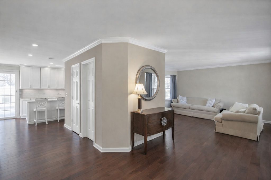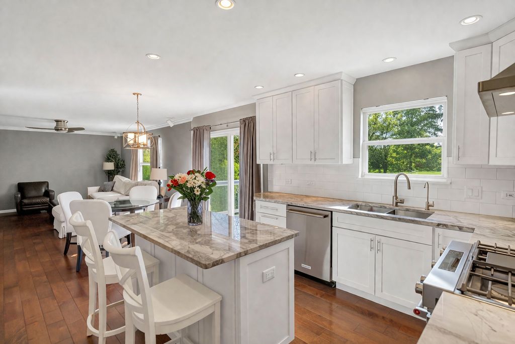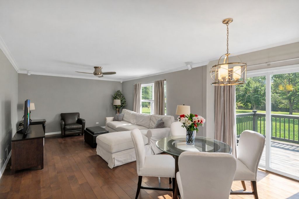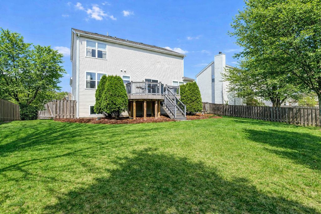 Move-in ready and completely updated, this stunning 4-bedroom home in the highly desirable Timber Trails community in Gilberts blends timeless style with modern comfort at every turn. Start your mornings with coffee on the charming front porch, then step inside to a sun-drenched main level featuring elegant crown molding and gleaming hardwood floors that flow seamlessly throughout. The inviting living room, filled with natural light, opens effortlessly to a formal dining area with a convenient pass-through to the kitchen-perfect for entertaining. The beautifully updated kitchen is a true showstopper, boasting stainless steel appliances and range hood, tile backsplash, 42-inch cabinetry, quartz countertops, a spacious island with breakfast bar, and a bright eating area with sliding doors leading to the outdoor space. The expansive family room offers serene views of the backyard, creating a warm and welcoming gathering space. Upstairs, retreat to the generously sized primary suite featuring a walk-in closet and a brand-new spa-inspired en-suite bath with a custom shower, along with three additional bedrooms, an updated full bath (2023), and the convenience of second-floor laundry. The newly finished English basement (2024) adds incredible versatility with a large recreation room, bonus room ideal for a home gym or game space, a half bath, and ample storage. Step outside to unwind on the deck overlooking a private, fenced yard-perfect for relaxing or entertaining. New Roof in 2020! All of this in a prime location just minutes from parks, shopping, Advocate Sherman Hospital, and easy interstate access-Nothing to do but move in!