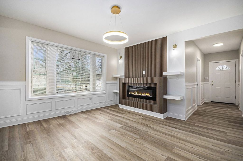 Welcome to this beautifully updated home offering modern finishes, generous space, and timeless curb appeal. **New roof, new windows, all new electric and plumbing, brand new finished basement** Nested on an oversized lot with a SINGLE PIN. A charming covered front porch welcomes you in and creates the perfect place to enjoy morning coffee or evening sunsets. Inside, the bright open-concept living and dining areas feature large windows, stylish flooring, and a seamless flow ideal for everyday living and entertaining. The fully renovated kitchen showcases sleek white cabinetry, quartz countertops, stainless steel appliances, and elegant gold fixtures. Spacious bedrooms provide comfort and flexibility for family, guests, or a home office. The finished lower level adds valuable living space, perfect for a recreation room, gym, or media area. Thoughtful updates throughout create a move-in-ready home with modern style and functionality. Outside, the expansive yard offers plenty of room for gatherings, gardening, or simply enjoying the outdoors. A long driveway provides ample off-street parking for multiple vehicles. Conveniently located near parks, schools, shopping, and transportation, this home is the perfect blend of comfort, space, and location.