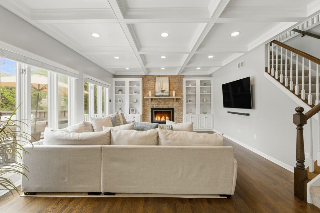 Welcome to this beautifully updated home in the highly desirable Stillwater subdivision, where thoughtful upgrades and timeless design come together effortlessly. Boasting five spacious bedrooms on the second level and four full bathrooms throughout, this home offers both comfort and functionality for everyday living. A versatile main-level bedroom offers the perfect option for a private office or an ideal in-law arrangement, complemented by a nearby full bathroom. The heart of the home is the stunning white kitchen, seamlessly flowing into the inviting family room, an ideal layout for both entertaining and daily life. This space is highlighted by custom built-ins, coffered ceilings, recessed lighting, and a striking brick gas fireplace. A secondary staircase adds both convenience and architectural character. The fully remodeled basement expands your living space with a beautifully designed dry bar, dining area, dedicated exercise room, and abundant storage, including a large utility room. Step outside to your private backyard retreat, perfect for entertaining, featuring a brick paver patio, built-in fire pit, outdoor grill, and refrigerator. The yard offers the perfect balance of green space and recreation with a sports court and basketball hoop, along with an in-ground sprinkler system for easy maintenance. Ideally located just a short walk from the Stillwater clubhouse, pool, and tennis courts, this home offers a rare combination of luxury, functionality, and community living in one of Naperville's most sought-after neighborhoods. Recent updates include a new furnace & AC in 2025!