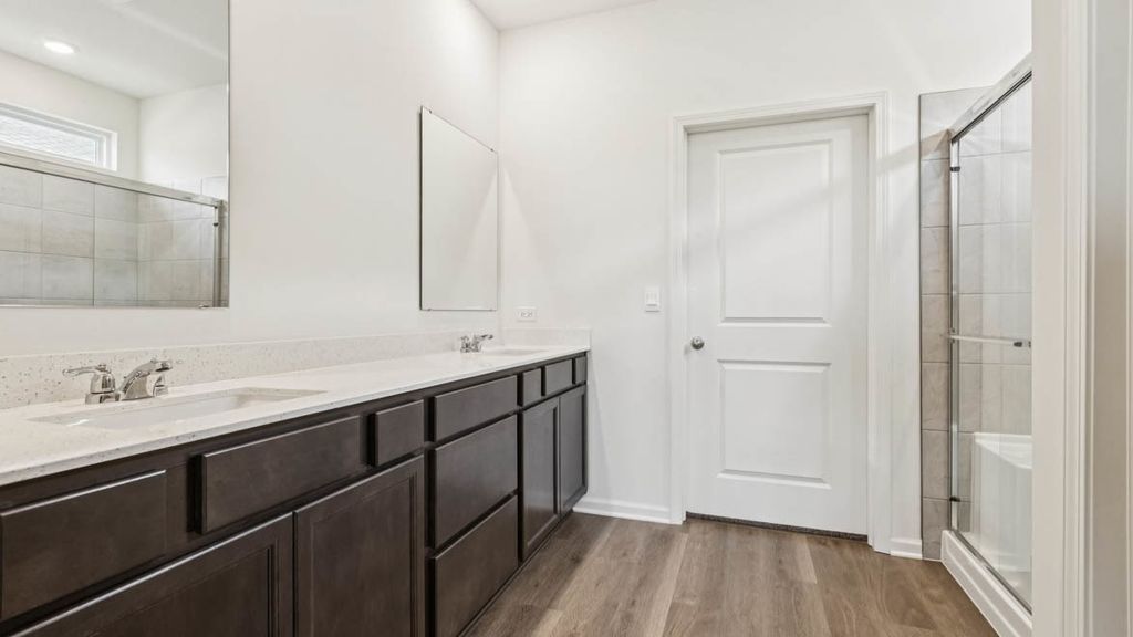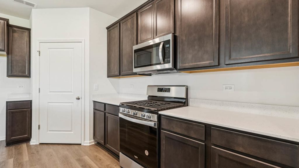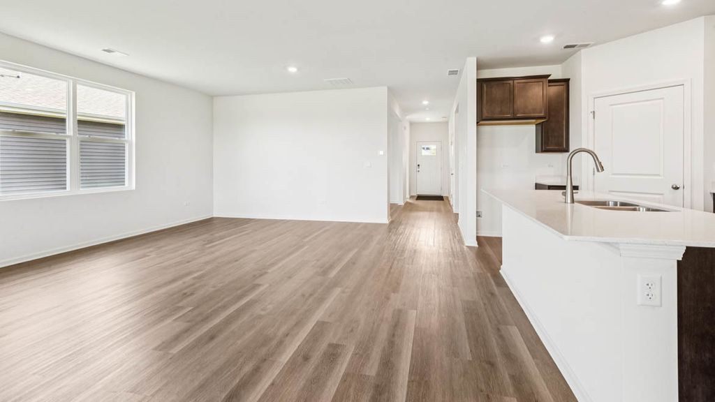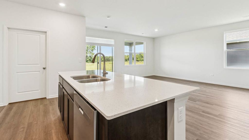 Envision yourself in Plainfield, IL at our new Greenbriar Community, located in Plainfield North School district 202. This beautiful new construction Clifton model home located at 14704 S Azalia Circle is MOVE-IN READY! This Freedom Ranch home includes lawn service, snow removal, sod front and back, landscape and covered back patio to relax on. This Clifton plan offers 1,863 square feet of living space with 2 bedrooms, 2 full baths, 9-foot ceilings and luxury, easy-to-maintain, scratch and water-resistant vinyl plank flooring. When you first enter the home, you see the secondary bedroom and full bath located up front for privacy. Walking down the hall, is the garage entry with nice landing space to take off your shoes, hang up your coat in the closet adjacent to the flex space. The flex space is suitable for an office, hobby room, sitting room, formal dining room or even guest sleeping space. Next you will walk into the open concept luxury kitchen/great room with deluxe quartz countertops, 42" designer cabinets with crown molding and soft-close feature. Large walk-in pantry features shelving for your storage needs and over-sized island with overhang is great for kitchen prep or entertaining and has stainless steel sink with disposal. Enjoy your private get away with your spacious primary bedroom and connecting en suite bathroom. Primary bathroom includes a raised height dual sink, quartz top vanity, and walk-in shower with glass shower doors with transom window above for natural light with huge walk-in closet. All Chicago homes include our America's Smart Home Technology. Photos are of a similar model home. Actual home built may vary.