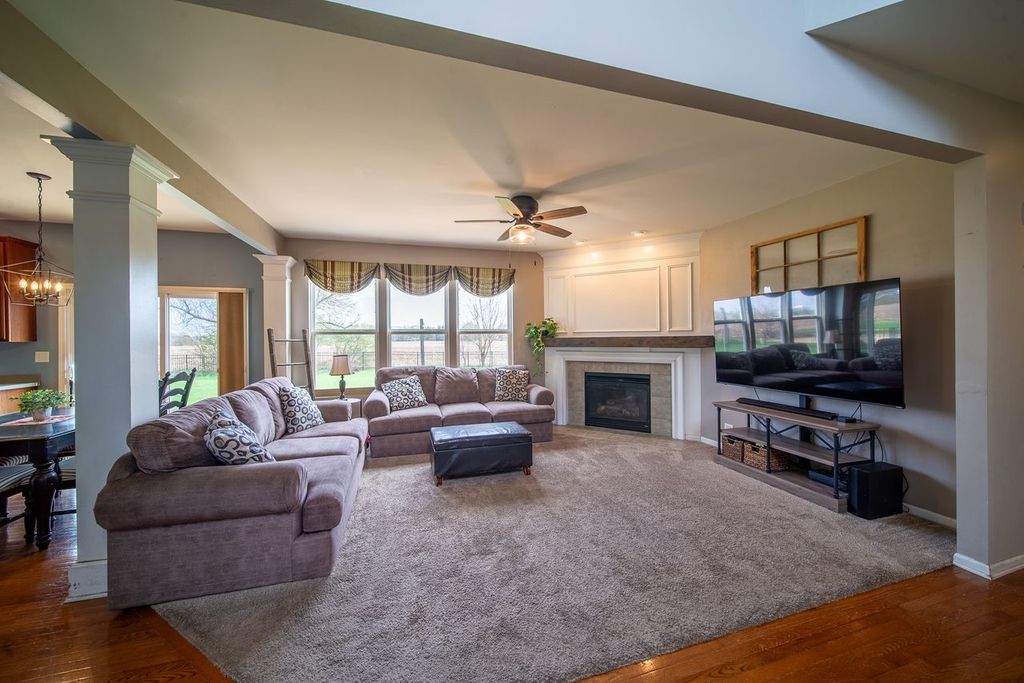 Highly sought-after Autumn Creek location! This large premium corner lot backs up to farmland, fully fenced in backyard features a large stamped concrete patio, open spacious eat-in kitchen with island, newer stainless steel kitchen appliances, 42" cabinets, kitchen pantry with plenty of storage, hardwood floors, fireplace with a custom wood mantle, 3-car garage, primary bathroom with soaker tub/separate shower, deep-pour full unfinished basement with rough-in plumbing, Washer/dryer included, priced to sell!