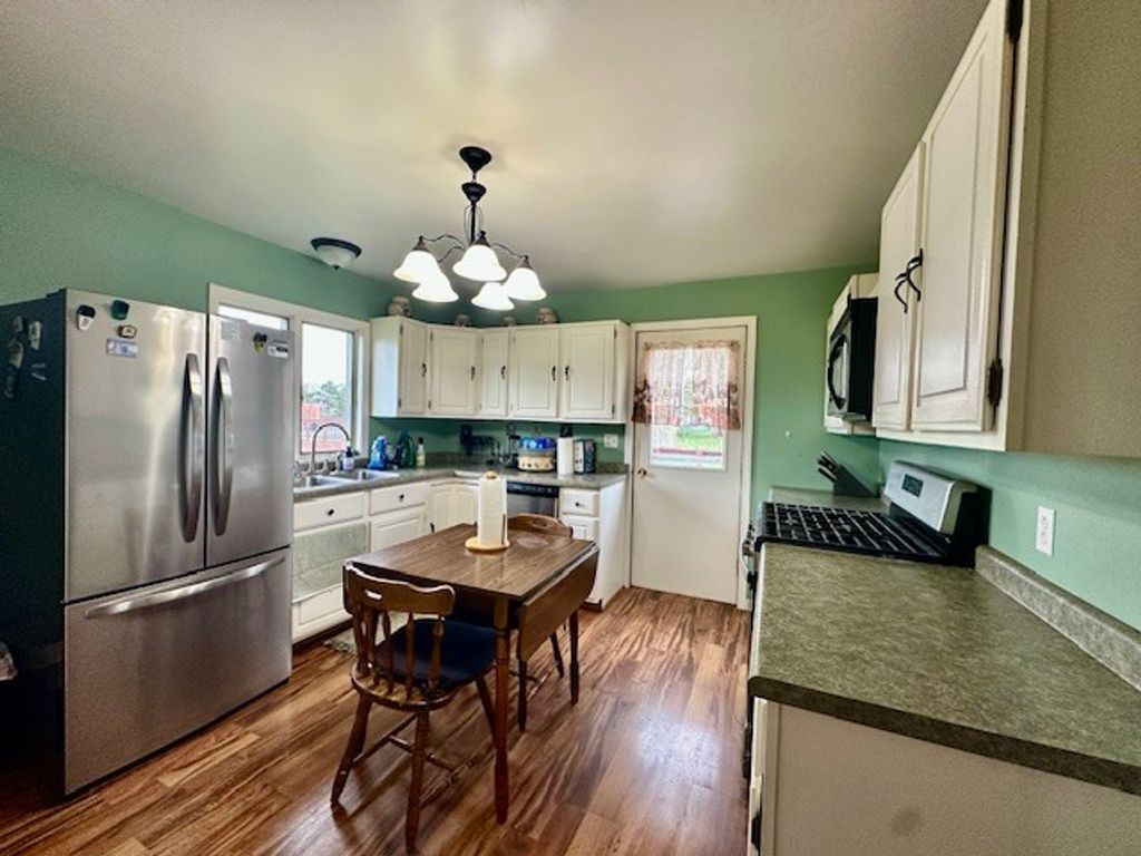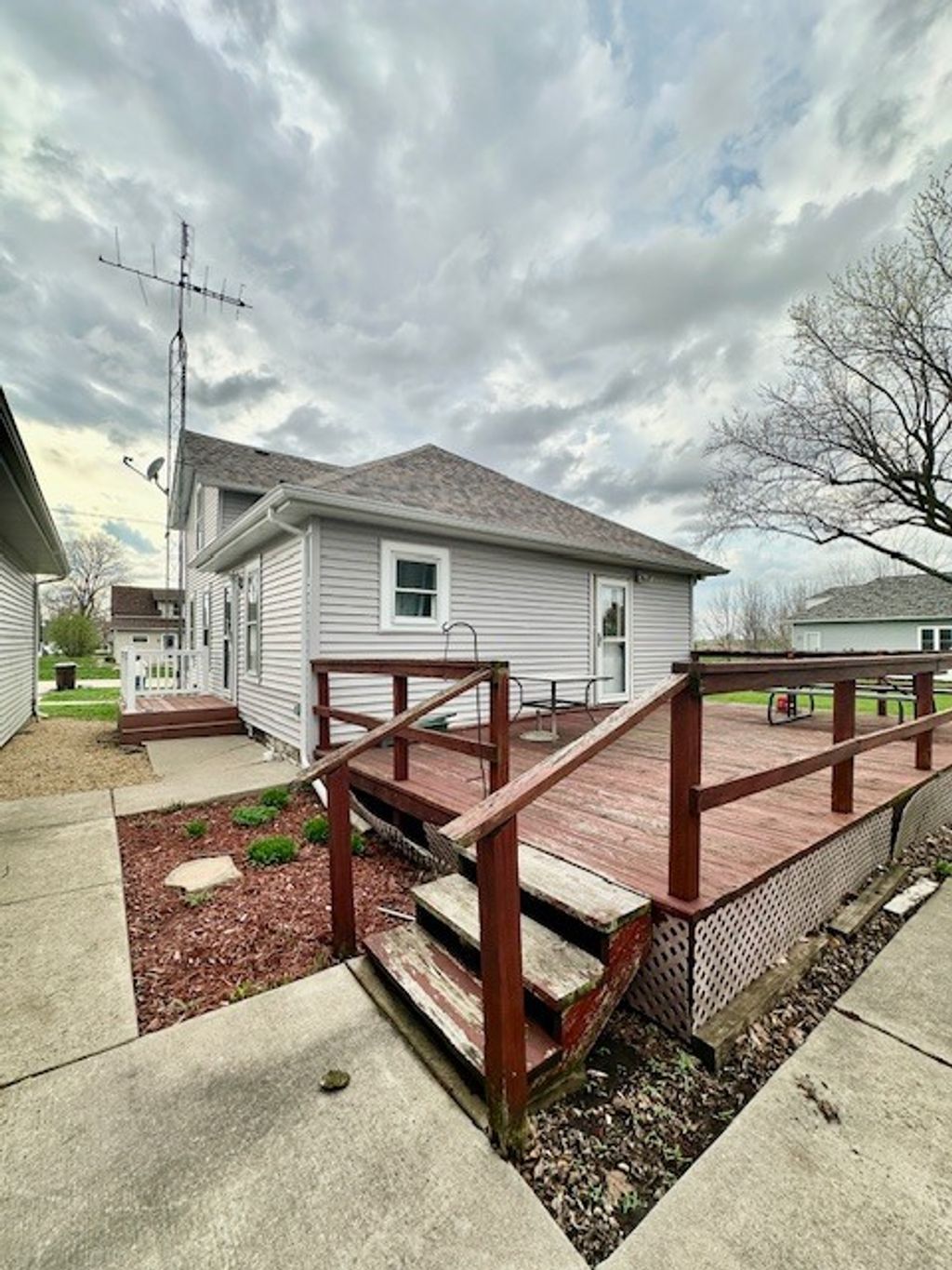 This charming home sits on an extra large lot in a quiet, welcoming community. Perfect as a starter home, it offers both comfort and value. The property features a heated four car garage with two overhead doors~ideal for storage, hobbies, or additional workspace. Major updates have already been taken care of, including newer roof and siding, a furnace and water heater installed in 2018 and central air added in 2019. Enjoy outdoor living with a spacious rear deck, a side porch featuring Trex decking and vinyl railings, and a large front porch with low maintenance vinyl railings~bring your porch swing and enjoy relaxing evenings! A cement drive way adds convenience and durability. This well maintained home is tryuly one you need to see to appreciate all it has to offer.