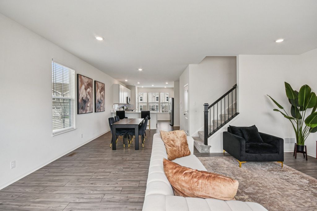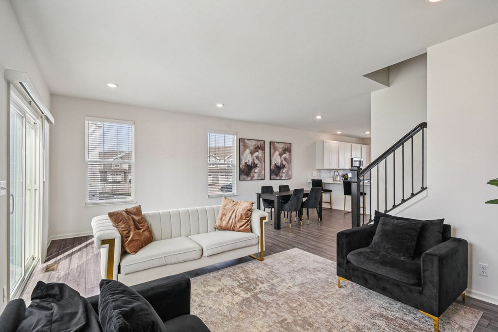 Welcome to this contemporary end-unit townhome in the desirable Park Pointe community. This Chatham model features an open-concept main level highlighted by a gourmet kitchen with quartz countertops, a center island, stainless steel appliances, and a spacious walk-in pantry. The living area offers direct access to a private deck, perfect for outdoor relaxation. The upper level includes three bedrooms, featuring a primary suite with a walk-in closet and a double-vanity ensuite. For convenience, the laundry room is located on the second floor. The finished lower-level bonus room provides versatile space for a home office or gym. This smart home includes a video doorbell and remote thermostat access. Located near the Illinois Prairie Path, Fox River Trail, Koehler Fields, and easy access to 25, 31, and 59. Well run association covers your exterior maintenance, lawn care, and snow removal. Turnkey & move-in-ready! This is the one you've been waiting for! ***Need Closing Cost Assistance or rate buy-down credits? Reach out to the listing agent to discuss potential incentives.***