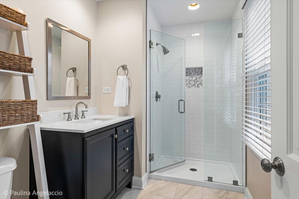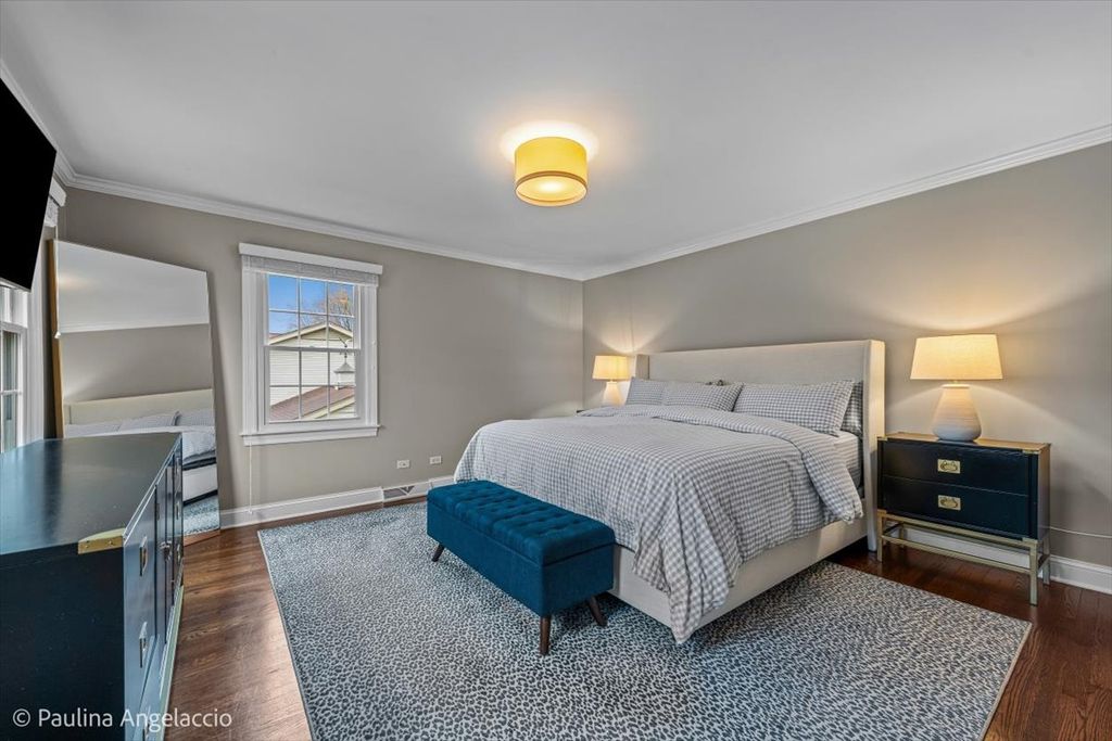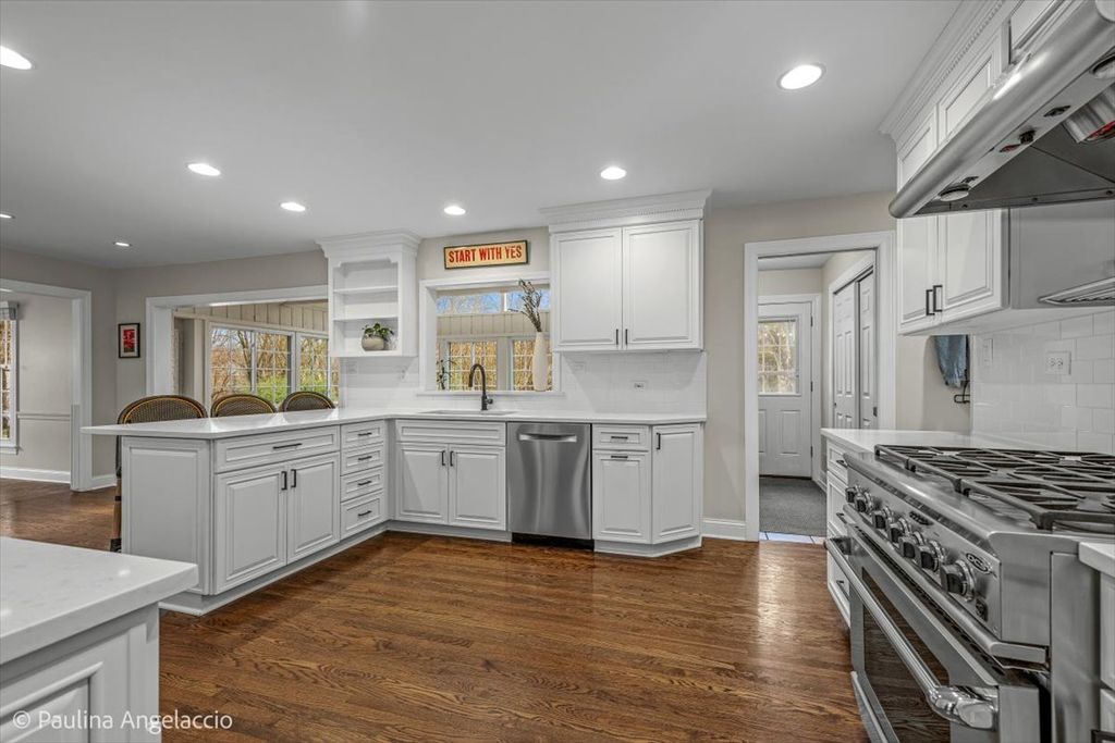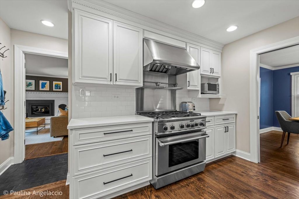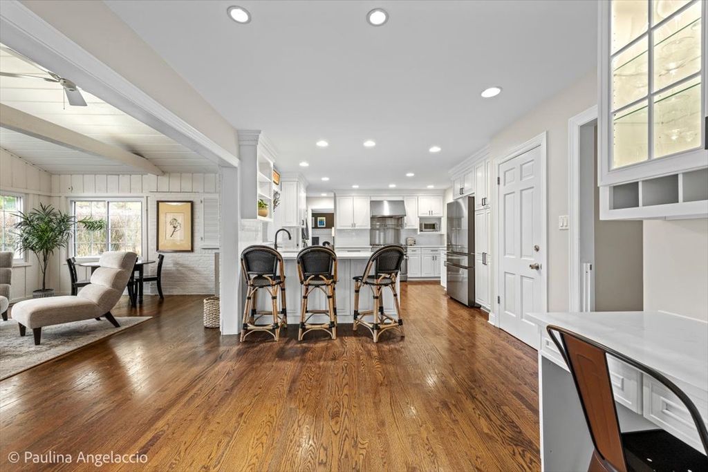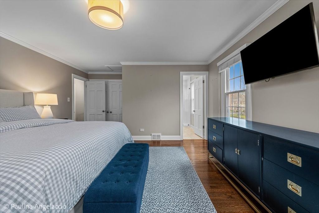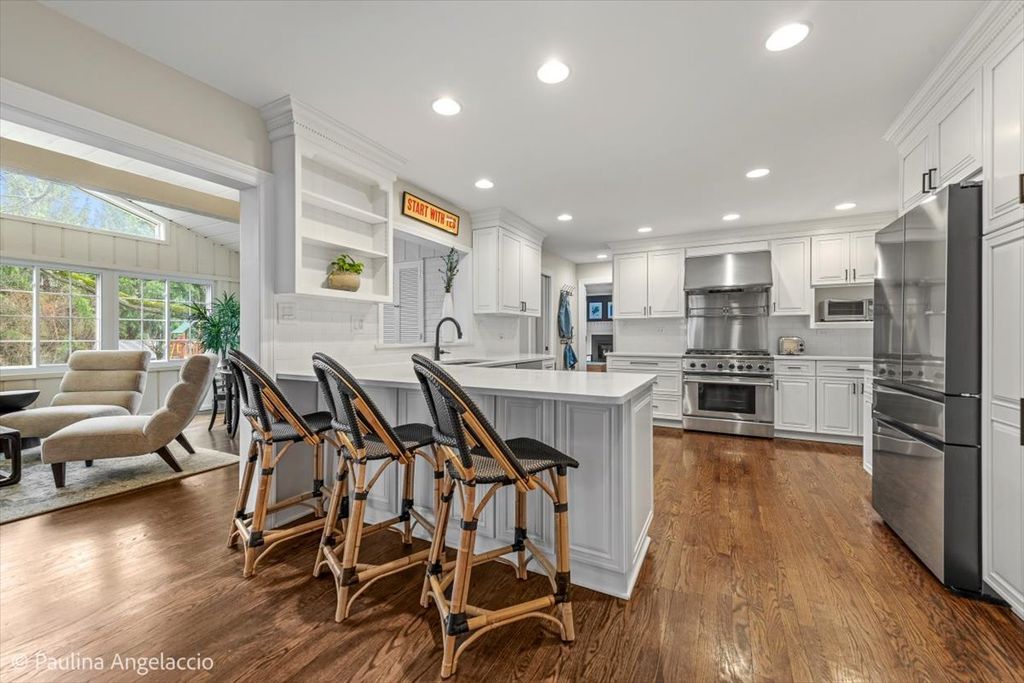 Chic and sophisticated, this picture-perfect Fox Point home offers 4 bedrooms and 2.1 baths with a completely turnkey interior designed for both everyday living and effortless entertaining. A light-filled floor plan showcases hardwood flooring flowing seamlessly throughout the main and upper levels, complemented by spacious living room and elegant formal dining room with a convenient pocket door to the kitchen, ideal for hosting gatherings and holiday celebrations. At the heart of the home, the beautifully appointed chef's kitchen features crisp white cabinetry, a peninsula with breakfast bar seating, and an open connection to the sunroom, creating a natural hub for gathering. The sunroom, with its vaulted ceiling and serene backyard views, is the perfect spot to enjoy your morning coffee or unwind in the evening. Double French doors lead into the inviting family room with a cozy fireplace and sliding doors that open to the rear deck, seamlessly blending indoor and outdoor living. A main-level laundry room with exterior access and a stylish powder room add everyday convenience. Upstairs, the gracious primary suite offers an updated ensuite bath, while three additional generously sized bedrooms and a well-appointed hall bath complete the second level. The finished lower level is designed for fun and function, featuring luxury vinyl flooring, a spacious recreation area, exercise room, and abundant storage. Set on a fabulous interior lot, the backyard provides both privacy and plenty of space for outdoor activities and relaxation. Additional highlights include a two-car attached garage with pull-down attic storage. Enjoy all that Fox Point has to offer, including a community pool, sports courts, lake, playground, and vibrant social events. Ideally located near Lines Elementary, ball fields, and just minutes from charming downtown Barrington, Metra, shopping, and dining. A true 10, this is the one you've been waiting for!