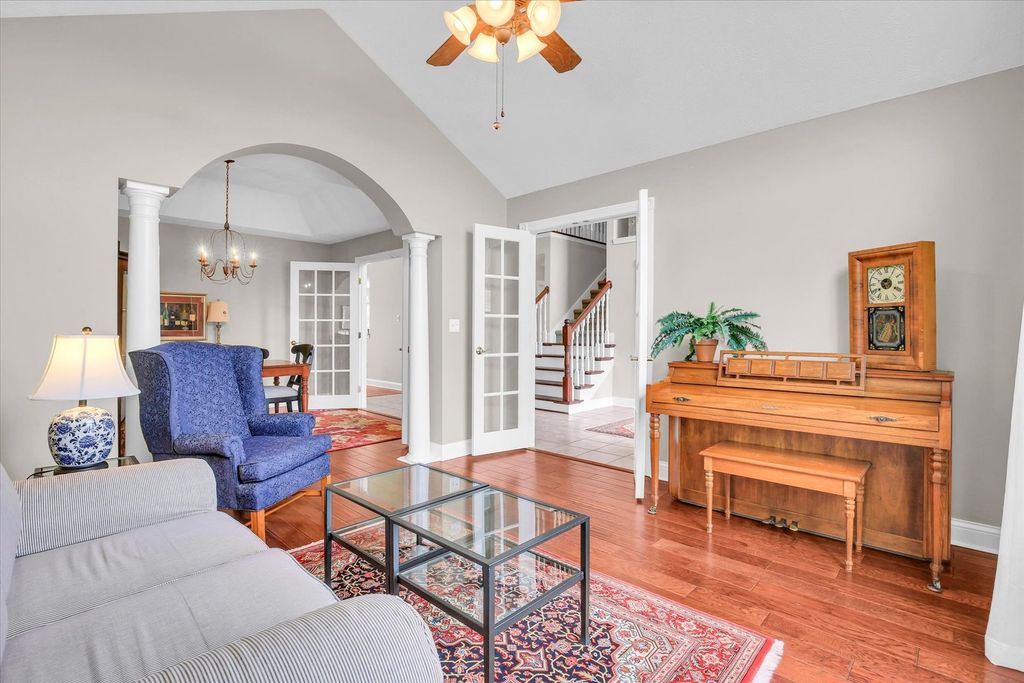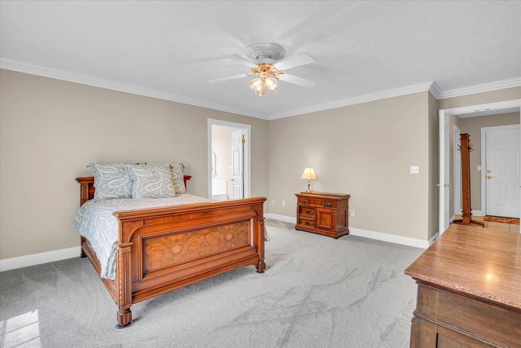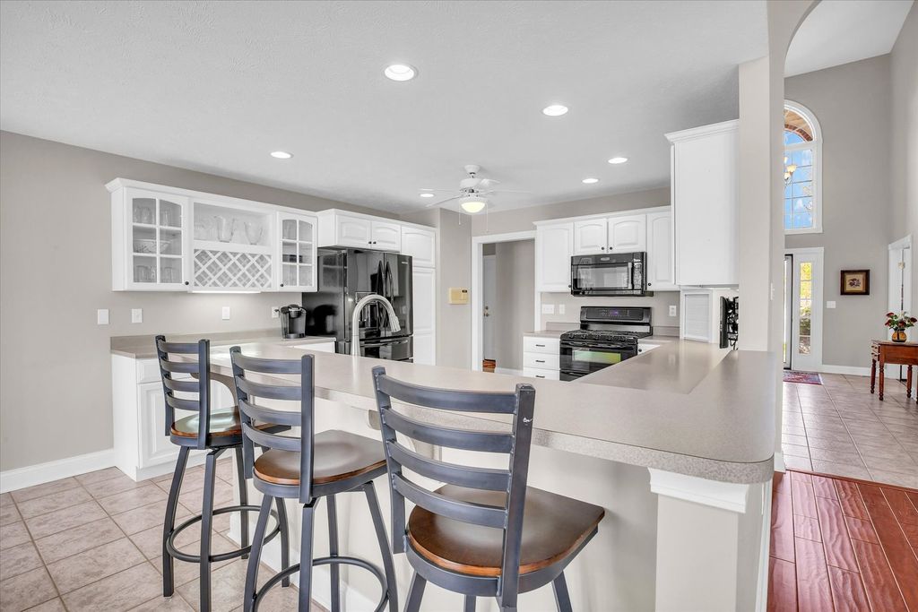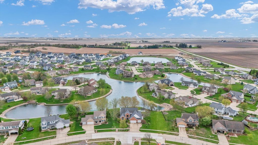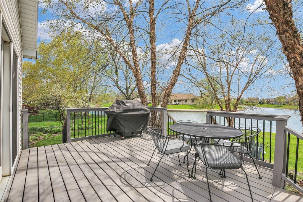 Stunning 1.5-story lakefront home in the highly desirable Country Ridge neighborhood in Mahomet. This beautifully maintained property offers soaring ceilings, dramatic windows, and an abundance of natural light throughout. The spacious living room features a striking fireplace and expansive views of the lake, creating a warm and inviting atmosphere. The main-floor primary suite provides comfort and convenience, while the functional layout includes formal living and dining rooms, along with a breakfast nook perfectly positioned to take in peaceful water views. The kitchen opens seamlessly to the main living space, ideal for both everyday living and entertaining. Step outside to enjoy the expansive deck and covered patio with pergola, surrounded by mature trees and lush landscaping for added privacy. The backyard offers exceptional lake views and a serene setting perfect for relaxing or hosting guests. This home combines space, natural beauty, and a prime waterfront location-an incredible opportunity in one of Mahomet's most sought-after neighborhoods.