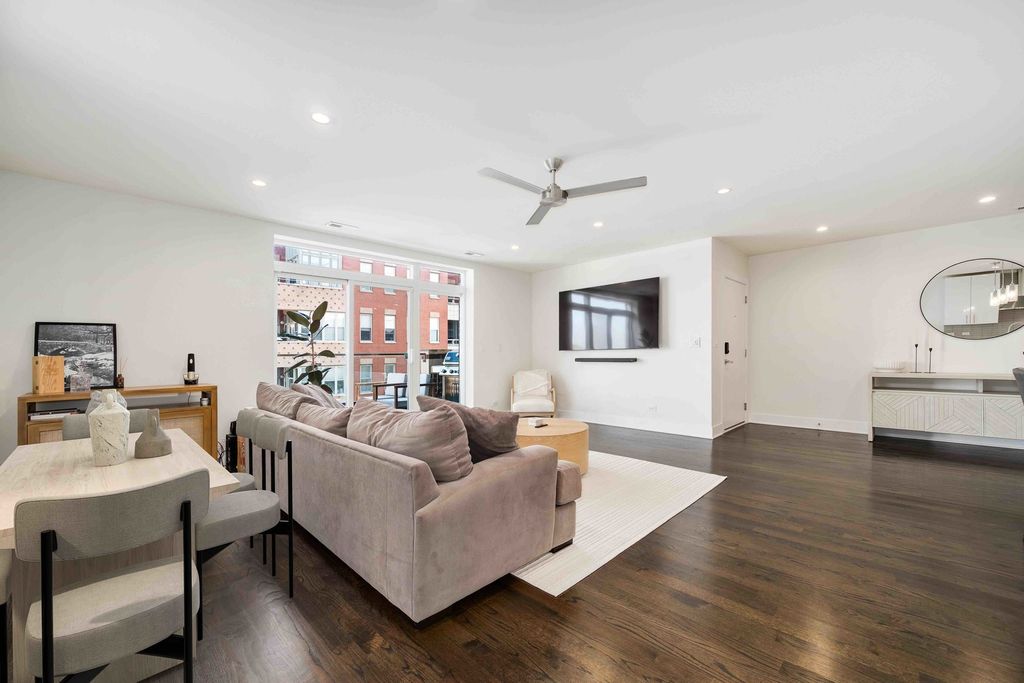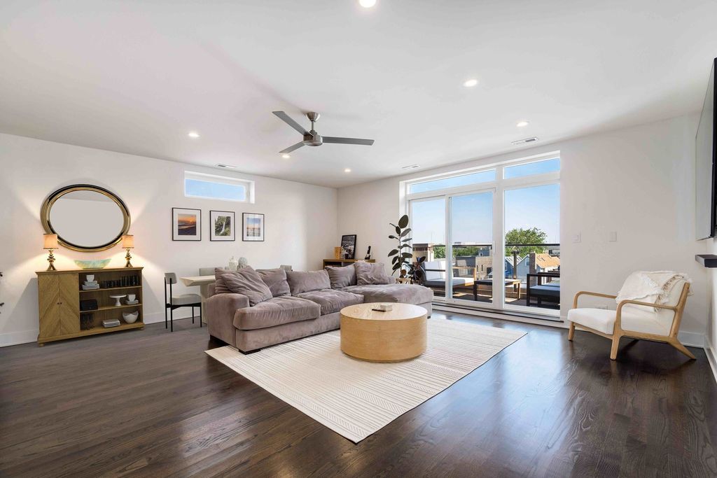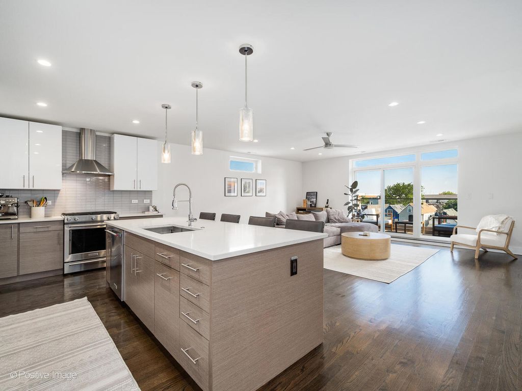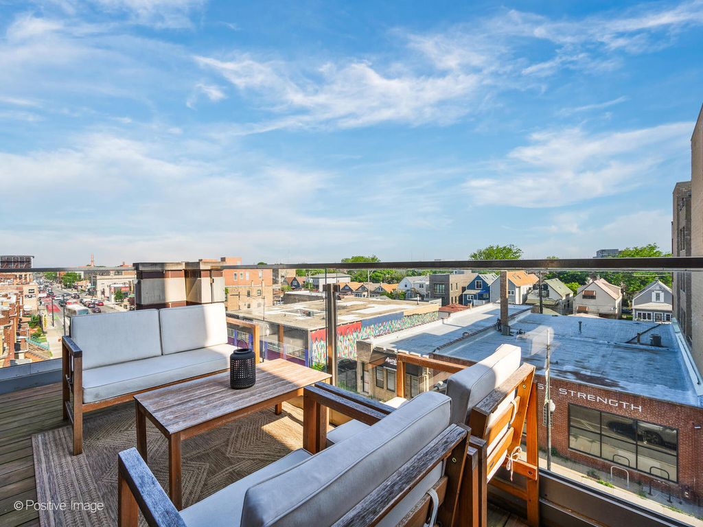 Experience the best of indoor-outdoor living in this extra-wide 3-bedroom, 2-bathroom penthouse, offering beautifully updated interiors and three private outdoor areas-including a stunning, newly rebuilt 650 sq. ft. private roof deck. Inside, enjoy an expansive living/dining area that opens to a private balcony. Throughout the home, you'll find wide plank hardwood floors, designer lighting, and custom closets. The chef's kitchen impresses with white quartz countertops, top-of-the-line KitchenAid stainless steel appliances, a large island, and pantry storage. The oversized primary suite features a spa-caliber en-suite bath with marble tile, dual quartz vanity, and a frameless glass walk-in shower, a second balcony, and a custom walk-in closet. The private roof deck space is perfect for entertaining and features brand-new composite decking, turf, railings, and natural gas hookup. A heated, attached garage space, in-unit laundry, and abundant interior and exterior storage complete the package. Ideally located in the acclaimed Avondale neighborhood, recently named the #5 Coolest Neighborhood in the World by Time Out, and near the Chicago River path, Roscoe Village favorites, Mariano's, Whole Foods, and easy access to 90/94, this one truly has it all.