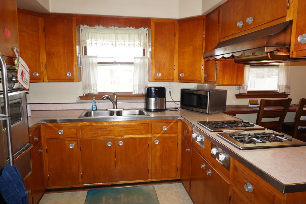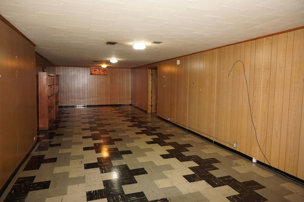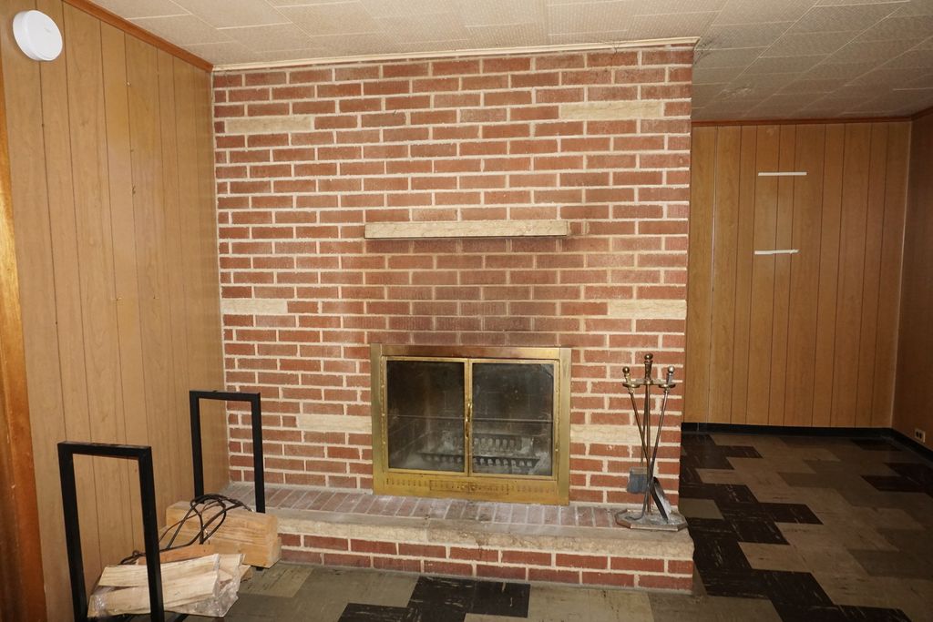 Classic Mid Century Modern Brick and Limestone Ranch on Full Dry Basement. Lovely Layout with Slate Entryway, Fireplace in the Living Room, Formal Dining Room, Kitchen with Built In Stove and Oven, Breakfast Nook, 3 Generous Bedrooms, 2 Baths with Vintage Fixtures, 3 Seasons Room, Partially Finished Basement with Fireplace, Intercom, Whole House Fan, Oak Floors under Carpet in most rooms, 2.5 Car partially finished garage with heat duct and a Shed. Alarm. A bit of TLC and this home will shine again. Roof is Newer.