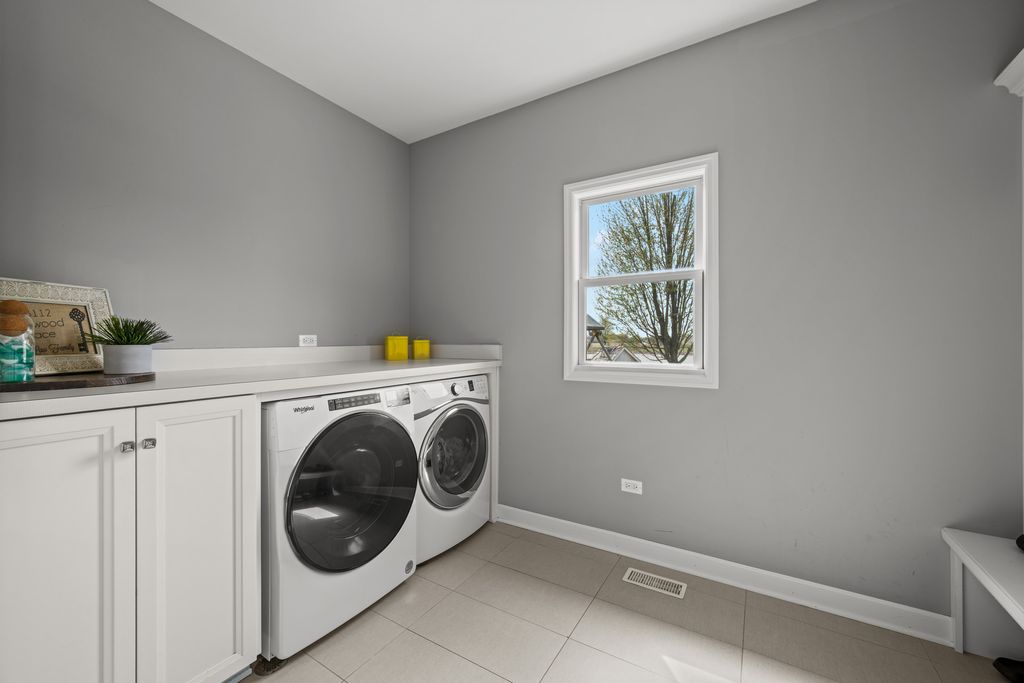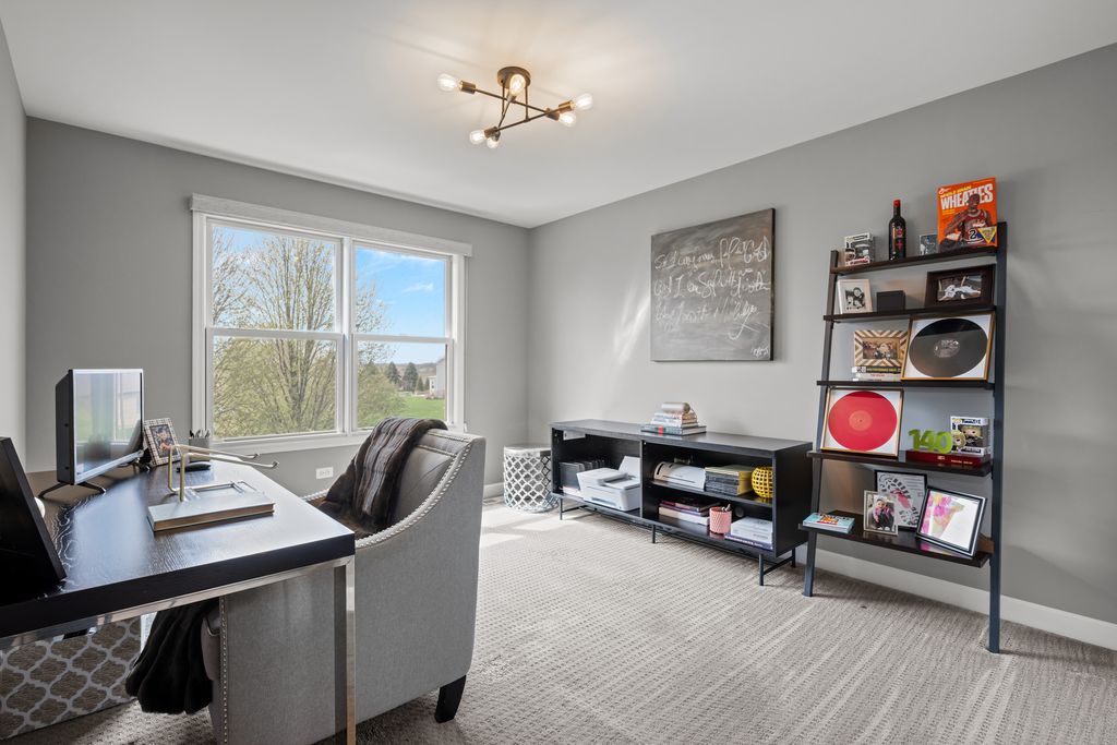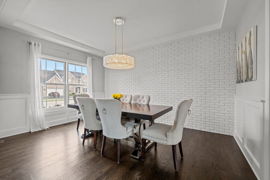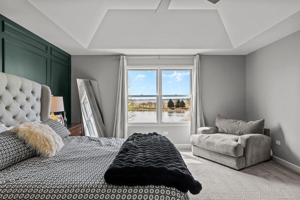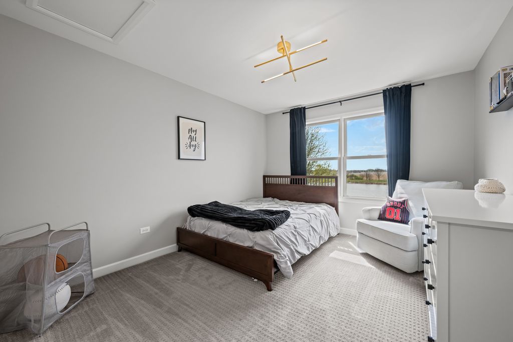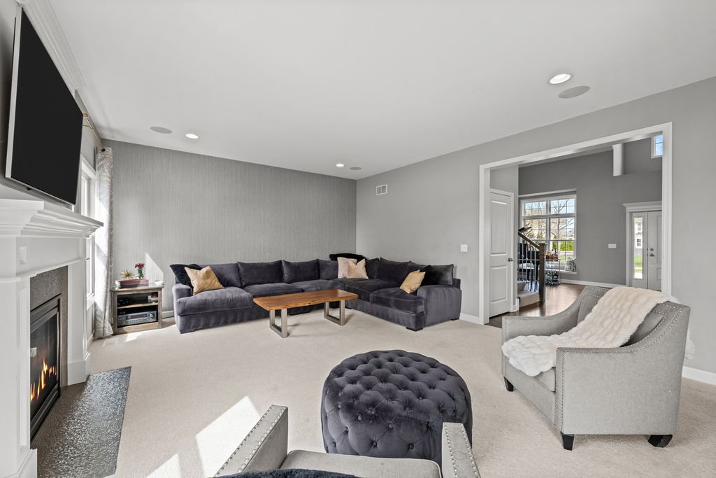 Stunning King's Court built full custom home in Plainfield's sought after Grande Park! Built and designed to a level you won't find in national builder homes. This quality built brick home offers a gorgeous pond view out every window on the back of the home. Dramatic 2 story living room & foyer greet you upon entry. Kitchen is flooded with natural light, and offers island with seating, multiple pantries for storage, custom tile backsplash, quartz countertops, recessed lighting, and opens to family room. Family room offers floor to ceiling direct vent fireplace and is a cozy spot to relax and enjoy the serene water view. 4 generously sized bedrooms up. Incredible master suite offers vaulted ceilings, dual walk in closets, massive walk in shower, separate soaking tub, dual shave height vanities with marble top, and a gorgeous pond view to wake up to every morning. Full finished basement with rec room, fitness and play areas, half bathroom, and tons of storage. Outside you'll find a techo bloc patio, firepit, hot tub, and playset to enjoy the view all summer long. Grande Park offers 100-acre park, a private aquatic center with a clubhouse, and 7 miles of walking/biking trails. Residents have access to sports fields (soccer, baseball), tennis courts, basketball courts, a roller-hockey court, sand volleyball, and winter amenities including two skating rinks and a sledding hil all included in your annual assessment! This neighborhood sells fast - hurry!