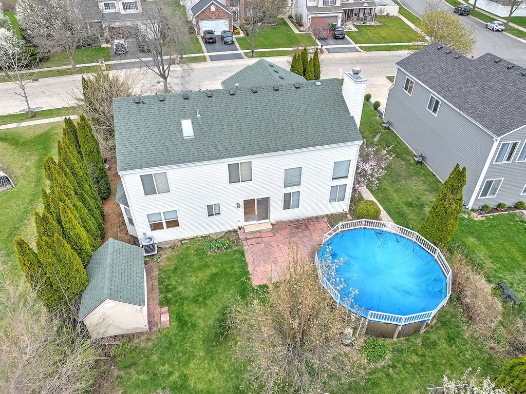 This home has been the pride and joy of its original owners and their family, and now offers a wonderful opportunity to bring it back to its full glory with a little TLC. Featuring 3 bedrooms and 2.5 bathrooms, this home boasts an open-concept layout with high ceilings, a cozy fireplace, and a skylight that fills the space with natural light. The spacious kitchen includes an eating area and flows seamlessly into the main living space-perfect for entertaining. The expansive primary suite offers a private bath with a double vanity, separate shower, and relaxing soaker tub. Upstairs, you'll find a large loft area overlooking a picturesque pond-ideal for a home office, additional living space, or easily convertible into a 4th bedroom. Additional highlights include a full unfinished basement ready for your ideas and a backyard pool and kids swing set-perfect for enjoying those hot summer days.