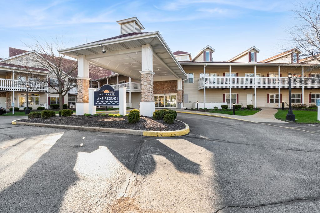 Enjoy views of Delavan Lake from your private balcony in this 2nd floor, one-bedroom Condo/Hotel. This bright & sunny unit is a great get-a-way with rental income! Open kitchen/living room combo has LVP, FP, Pull-out couch & access to exterior space. Spacious bedroom w/ king size bed & closet & bathroom adjacent. Owners storage room on 1st floor. Common areas & hallways recently painted & updated. The resort has an indoor & outdoor pool w/ hot tub, along with exercise area & conference rooms. Great views of the water from the resort deck or patio surrounding the outdoor pool. Walk to Village Supper Club! Easy access from HWY50. Minutes to Lake Lawn Lodge, downtown Delavan, & all shopping, restaurants and amenities!