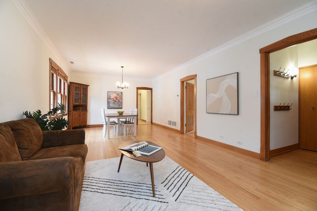 Charming, surprisingly spacious, neat as a pin, all-brick, move-in ready bungalow in Lincoln school beckons! The inviting, generous front porch with its swing welcomes you into a foyer where you can pause to appreciate the tall ceilings, gleaming maple hardwood floors, and beautiful, copious windows! Gather with loved ones in the oversized living room, drenched in light from the wall of front windows, with plenty of space for multiple conversation areas--perfect for entertaining or for cozy nights in. Easily host your largest holiday parties in the adjacent, massive dining room. Cooking your gourmet meals or snacks is a dream come true in the fully-renovated kitchen! This thoughtfully-designed space has everything you've been looking for--miles of granite countertops; a huge center island with seating; loads of quality, bright cabinetry; pull-out pantry; extra storage space; all stainless appliances including a double oven and brand new cook top; venting exhaust; an extra-large, deep sink with touch faucet; and big, bright windows. This first floor level also features three large bedrooms, all with bright, tall windows and generous closets! A beautiful, fully renovated serene hallway bath boasting gorgeous tiling; original, oversized bathtub, and fresh paint is convenient for guests and everyday living. When you're ready to retire, head upstairs to your private, en-suite oasis! This lovely, spacious, sunlit room has a great closet, bonus closet and storage, and its own en-suite bath with walk-in shower and built-in storage. And, there's room to expand even further into the unfinished portion of the attic, which is bright, tall, and ready for your finishing ideas. You may not be thinking of more space, though, once you've seen the amazingly renovated, high and dry lower level! The 3-years new, fully reimagined, massive space offers an enormous family room that's currently a TV room, pool room, and game room space, including a dry bar with beverage cooler, a powder room for easy entertaining and exercise spaces too with new windows and ejector pit! The laundry room boasts extra storage and a sink, and there are additional storage closets throughout the basement. Al-fresco, you'll find even more to love. Off the kitchen is a fabulous three-season porch that leads to a charming backyard with a brick paver patio and an extra-wide 2.5 car garage that was formerly a coach house! The second floor of the garage offers additional storage, and there's plenty of grassy and garden areas as well. This home has modern amenities (updated lighting, central air, ejector pit!) with vintage charm (woodwork, ceiling height, windows!) and so much has been redone in this home - exterior and interior paint ('26); gut basement remodel with new windows, new powder room, ejector pit and overhead sewer ('23); first floor bath ('18); gut kitchen renovation ('13); 200 Amp service ('13) and more. All the space, light, features, and updates you've been searching for, all on one of the friendliest blocks, in a fantastic south Oak Park location down the street from Lincoln Elementary school and park, pool, dog parks, shopping, coffee, ice cream, restaurants, groceries, public transportation, the El, 290, and so much more! This is the one you've been waiting for--all you have to do is move in and enjoy summer! Welcome home.