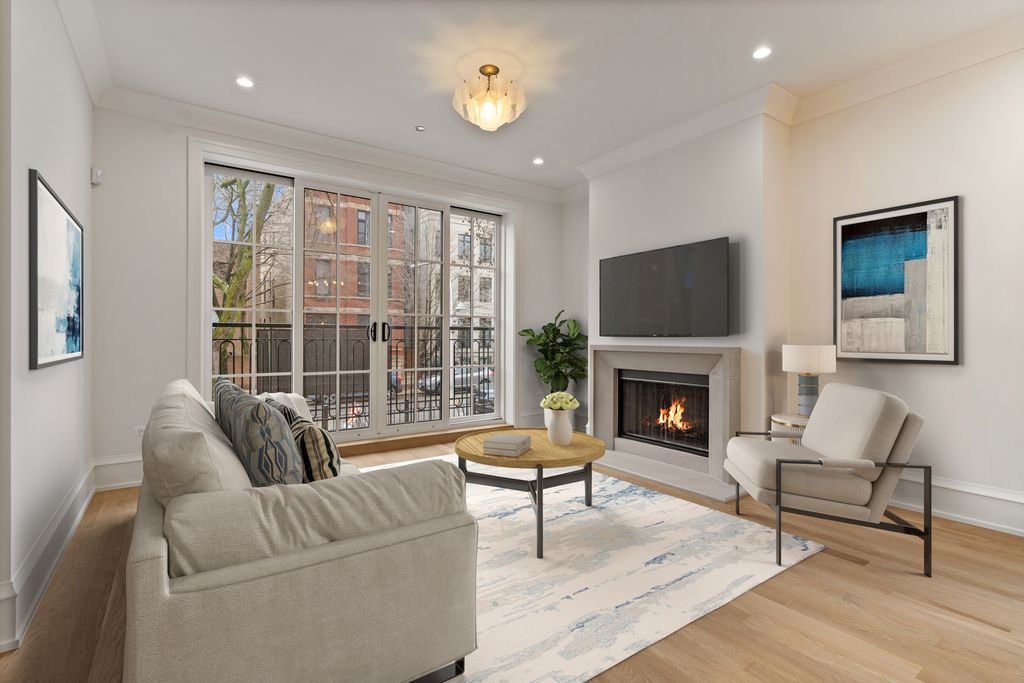 ONLY TWO LEFT. Rare opportunity to live on one of the most prestigious streets and nestled among the iconic mansions of Chicago in a new construction condo. This new construction project blends in with a timeless brick and limestone facade. Separating itself from other new construction, this home offers a custom kitchen with Ceruse Oak cabinets, natural quartzite countertops, professional grade appliances including speed ovens, and all natural stone baths. This three bedroom, three and a half bath duplex down boasts a large covered terrace connecting directly to a private garage rooftop deck. Custom kitchen with professional grade appliances, natural stone countertops, and a large island opens to the great room with a wood-burning fireplace and seamless access to the outdoor space. Extra wide front family/dining room overlooking tree-lined Orchard with a second wood-burning fireplace and wet bar. All three bedrooms with full en-suite bathrooms. Sweeping primary suite with walk-in closet, oversized bathroom with split vanities, steam shower with rain and free-standing soaking tub. Generously sized second and third bedrooms and a full laundry room with utility sink. Rich details throughout, radiant heat in the lower level, garage parking and storage.