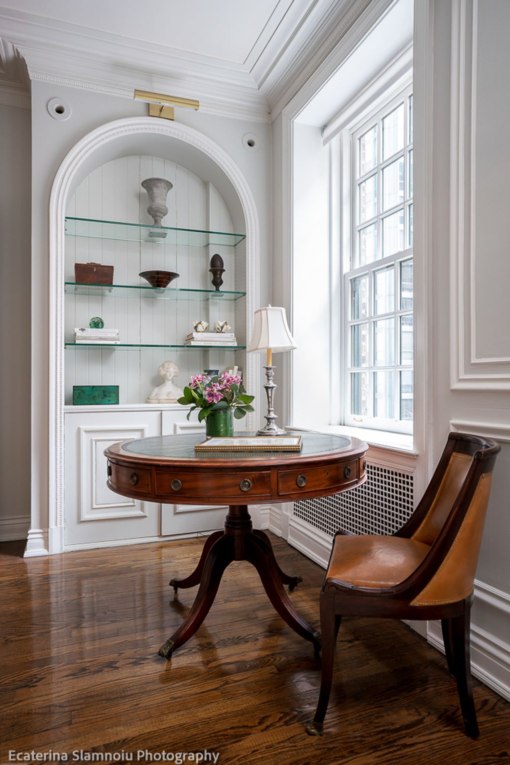 Welcome to timeless elegance at 232 Walton. This extraordinary 4-bedroom, 4-bathroom residence with a dedicated office is set within a prestigious pre-war co-op just half a block from Lake Michigan and Michigan Avenue. The intimate, boutique building offers a sense of privacy rarely found with only two residences per floor and elevator access. A marble floored foyer graciously introduces the home, thoughtfully connecting each wing of the residence and featuring a discreet, custom-built mudroom. The expansive main living space is flooded with natural light from oversized south facing windows and anchored by a stunning marble fireplace framed by original moldings, with hardwood floors extending throughout. French doors lead to the formal dining room, an ideal setting for large scale entertaining and showcasing an art collection. A classic swinging butler door provides seamless flow between the dining room and kitchen, perfect for effortless hosting. The kitchen has been completely reimagined for the modern chef, featuring custom cabinetry, stone countertops, and top-of-the-line Thermador, Sub-Zero, and Miele appliances. A wet bar with dual beverage refrigerators and a cozy dinette completes the space, balancing luxury with everyday functionality. The bedroom wing is rich with original architectural details, including built-in storage and an inlaid ceiling with integrated lighting. All bedrooms are generously sized suites with ensuite or connected bathrooms and ample closet space. The primary suite, privately positioned on the southwest corner, enjoys subtle views toward Navy Pier and beautiful southern light. It easily accommodates king-sized furnishings, a sitting area, and offers three closets. The spa like primary bath features dual vanities and walk-in showers with Waterworks fixtures, separated by a pocket door to create a perfectly designed double bath experience. Three additional bedrooms maintain the home's original charm with a built-in desk and bookcases. Two share a Jack-and-Jill bathroom, while the third enjoys ensuite. One of the bedrooms is currently set up as a second living space with French doors leading to the living space. The rear wing of the residence is dedicated to a Ralph Lauren inspired office, complete with exquisite built-ins and an adjoining full marble bathroom with walk in shower. Additional highlights include a full laundry room with side-by-side washer and dryer, a central SpacePak system, and a meticulous renovation that preserves the home's historic character while offering modern comfort. Building amenities include a large common outdoor patio, dog run, landscaped green space, and valet parking next door. There are no financing restrictions, and property taxes are included in the monthly assessment. Welcome to refined, RL-inspired co-op living on Walton.