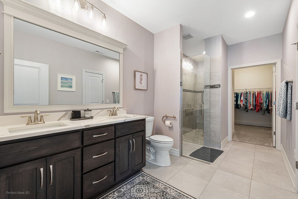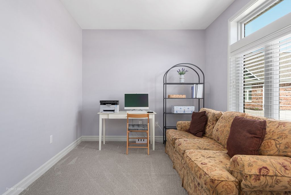 Better than new! This impeccably maintained all-brick ranch offers effortless, single-level living with 2 bedrooms, 2 full baths, and over 1,800 square feet of thoughtfully designed space. A sunroom, covered patio, private office (easily convertible to a third bedroom), and attached 2-car garage provide both flexibility and comfort. The home showcases exceptional craftsmanship, including detailed millwork and wainscoting in the dining area and sunroom, along with solid wood trim, oversized windowsills. The open-concept layout is enhanced by 9-foot ceilings and transom windows creating a bright and sunny atmosphere. The kitchen is beautifully appointed with high-end Brakur Custom Cabinetry, under-cabinet lighting, quartz countertops, and a spacious island with seating for four. The primary suite features crown molding, a generous walk-in closet, and a well-appointed bath with dual vanities, ceramic flooring, and a no-step shower complete with a teak bench. Located in the desirable Riverbend 55+ community, residents enjoy access to over 350 acres of surrounding public open space, along with a brand-new clubhouse offering pickleball and tennis courts, a great room, fitness center, and billiards room. Oops! Don't forget the bonus room above the garage - perfect man-cave, she-shed, craft room, etc. And below that is a utility room perfect for storage or home/car maintenance items. This home is super clean! Check out the matterport virtual tour!