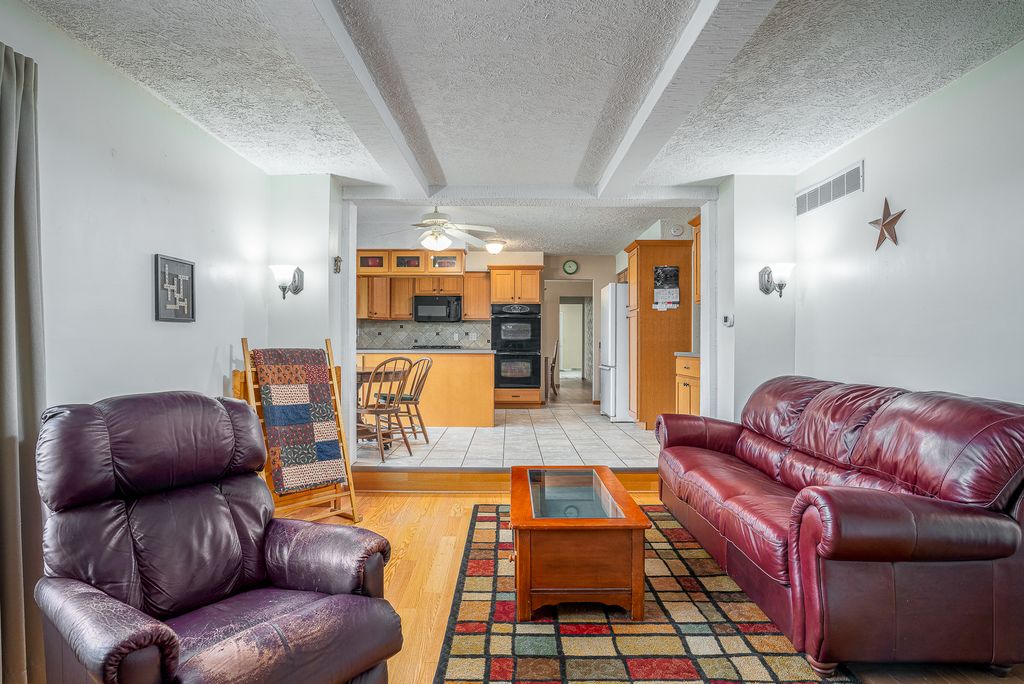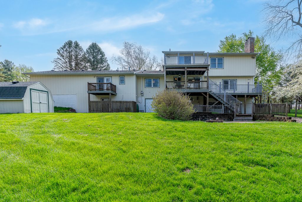 Unique & Spacious Home in Hickory Hills. 4 beds, 3 Full Baths & 2 Half Baths. Over 1.5 Acres with Mature Plants, garden plot, Pear & Apple trees. Two Attached Garages, 2 Car + 1 Car with extra space. Multiple Indoor & Outdoor Living Areas for Entertaining, Large Families, or Multi-Generational Living. Main level Accessible In-law or Guest Quarters with Bedroom, Bath, Living Area, laundry closet & Balcony. Master Suite, Bed 2, Bed 3, Full Bath & Laundry Room on 2nd floor. Workshop, 2nd Kitchen, 1/2 Bath, Rec Room & Tons of Storage in Walk Out Basement. Easy Access to storage/basement with Elevator from In-Law quarters. Zoned HVAC with 3 Separate Units. Partially fenced yard backs up to ravine with bridge across creek. Updates: 2026- Roof & Septic Pumped 2025- New Driveway, Dishwasher, Water Conditioner 2024- New Clothes Dryer 2022- New Windows main & upper floor