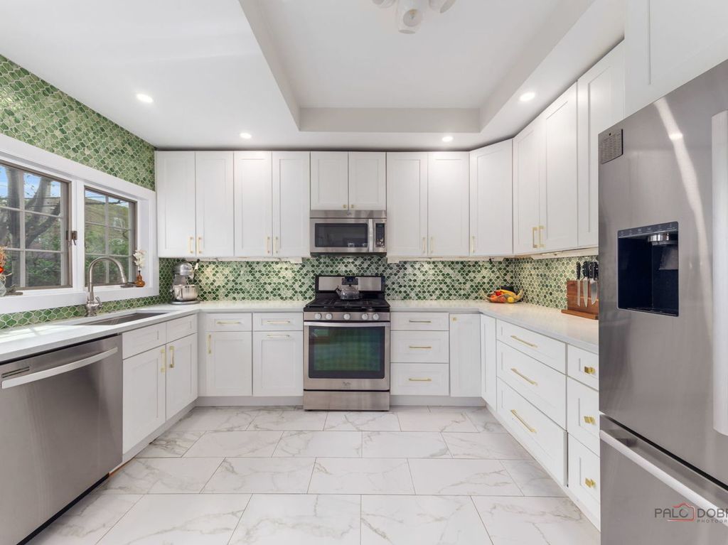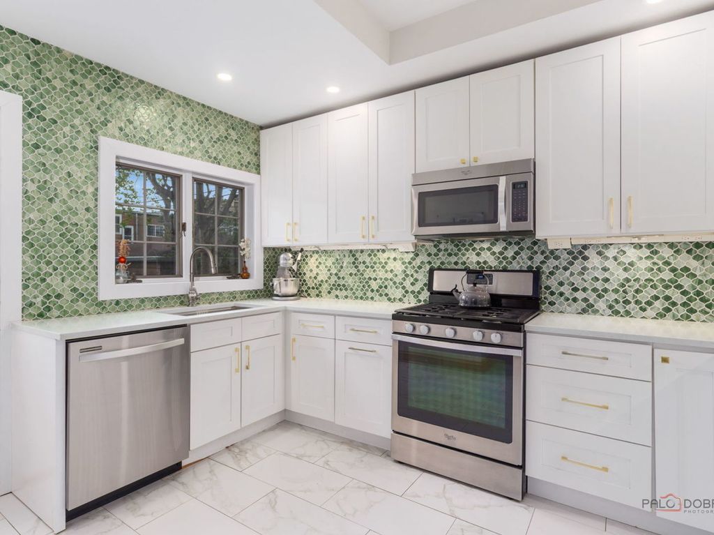 Gorgeous Portage Park updated and expanded Chicago Style Bungalow with full front porch, leaded glass windows, on an over-sized 35 x 125 professionally landscaped lot. Move in ready, with large 2 car garage with storage, ideally located just minutes from the vibrant Six Corners District. This spacious property features an open concept layout, a renovated kitchen with heated floors, and thoughtfully designed living spaces perfect for today's lifestyle. Recent improvements include a full basement that is partially finished with additional living space, 4th bedroom/office and full bath (2022), refinished hardwood floors, updated electrical, and modern fixtures throughout. Enjoy easy access to parks, shopping, dining, and public transportation, all while being tucked away on a quiet, tree-lined residential street. This home is a perfect blend of comfort, updates, and location! (Check out the Matterport Virtual Tour...click the camera above to the right!)