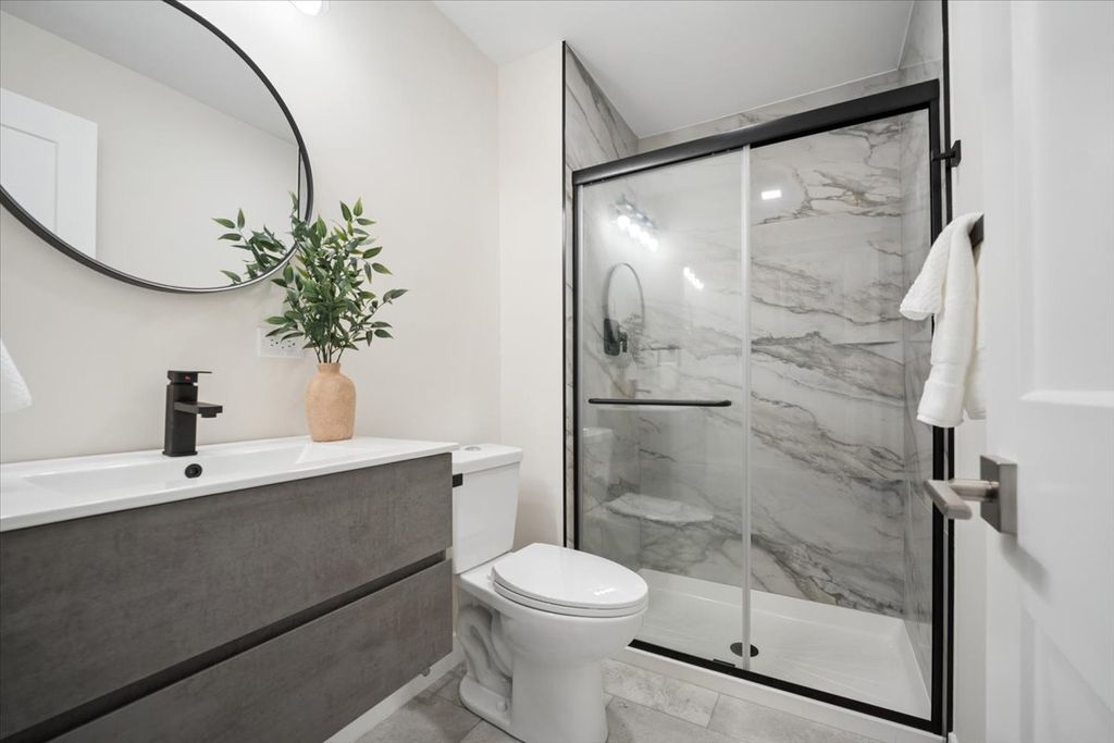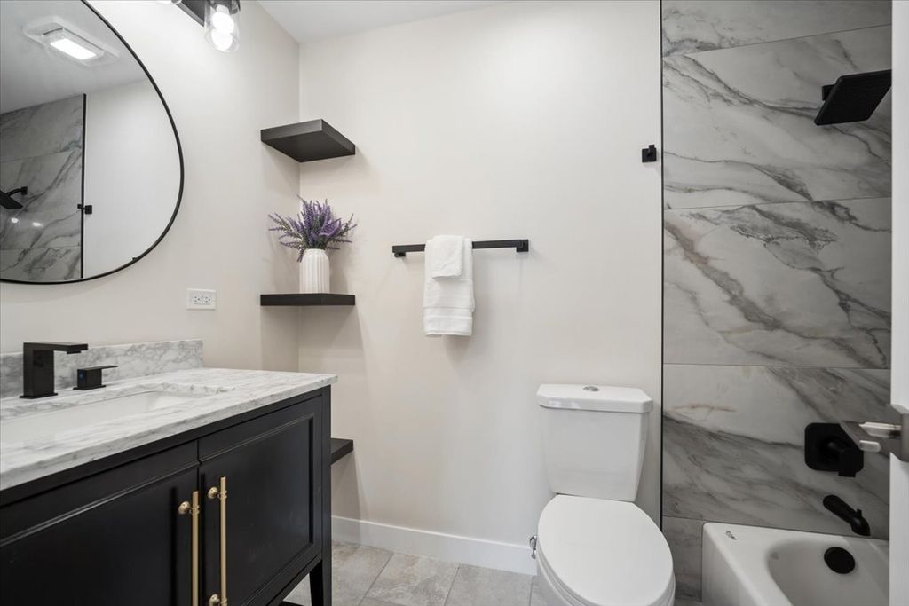 Welcome to this beautifully updated 4th-floor condo featuring 2BD and 2BATH. This modern, fully remodeled home offers laminate flooring, fresh paint, a brand-new kitchen and updated bathrooms, and upgrades from new windows to electrical wiring. The bright living space is filled with natural light, and the private balcony is perfect for relaxing. The primary suite includes an en-suite bath with a soaking tub, while the second bathroom features a walk-in shower. Additional highlights include same-floor storage, main-level laundry, bike storage, and a private garage. Enjoy amenities including a pool, clubhouse, fitness center, walking paths, pond, and sports courts. Conveniently located near shopping, dining, highways, and Metra.