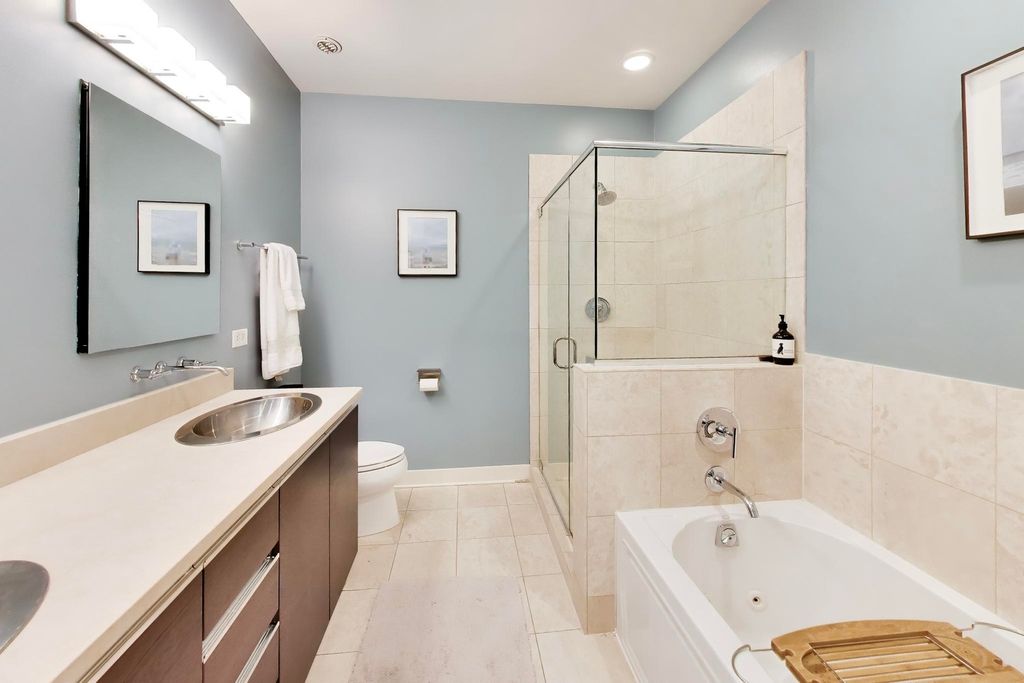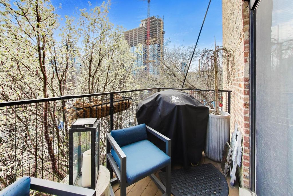 Experience the ultimate in West Loop living in this rarely available, meticulously upgraded timber loft! Step into a world where industrial charm meets modern luxury, boasting soaring 14-foot ceilings, dramatic exposed brick, and oversized windows framing breathtaking City skyline views. Entertain guests on your private balcony, perfect for grilling and soaking in the vibrant cityscape. Rich Cherrywood floors flow seamlessly throughout, creating a warm and inviting ambiance in every room. The chef-inspired kitchen is a culinary masterpiece, featuring sleek cabinetry, granite countertops, and a full suite of stainless-steel appliances (including a brand-new dishwasher). Retreat to your primary suite, complete with a spacious walk-in closet, double vanity, and separate shower. Enjoy the convenience of a brand-new in-unit Washer/Dryer and move-in-ready fresh paint. Benefit from a two-year-old HVAC, oversized private storage, and a deeded parking space included in the price. Elevate your lifestyle with building amenities like a rooftop deck, fully equipped gym, and a recreation room. Enjoy the exceptional value of Webpass Google Fiber high-speed internet. Located in an unbeatable location with easy access to the highway; Blue/Pink Lines; Fulton Market/Randolph St. AND Grand Ave. restaurants/bars - including Aberdeen Tap across the street! This loft offers the very best of city living. Investors are welcome to discover this exceptional opportunity! Walk Score 94/100.