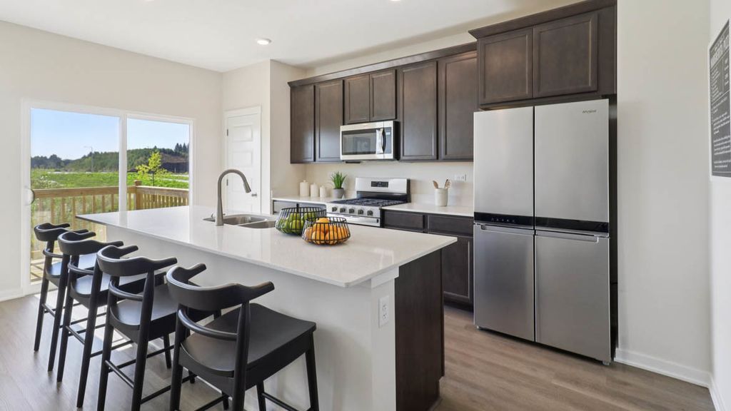 Discover yourself at 1679 Baler Ave, a beautiful new end unit townhome in our Wheatland Crossing community in Aurora, Illinois. This home will be ready for fall move in! This home includes a two-car garage and a fully maintained home site. This Ashton plan offers 1,794 square feet of living space with 3 bedrooms, a loft, and 2.5 baths. As you enter the home, you will be greeted by the open concept design, including dining and living areas and an expansive kitchen overlooking it all. The kitchen features designer cabinetry, a spacious island with quartz countertops, a pantry, and stainless-steel appliances. Luxury vinyl floors are included in all of the first level and has 9' ceilings through-out. Upstairs you will find a nicely sized loft and a large primary bedroom with 2 closets and an en suite bath. There is also a laundry room, a second full bath, and two additional bedrooms. Impressive innovative ERV furnace system and tankless water heater round out the amazing features this home as to offer. All Chicago homes include our America's Smart Home Technology featuring a smart video doorbell, smart Honeywall thermostat, smart door lock, Deako smart light switches and more. Photos are of similar home.