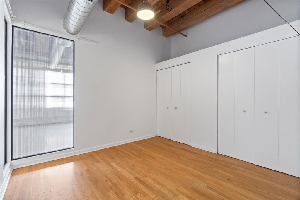 Brick-and-timber 2-bedroom, 2-bath loft in Chicago's sought-after West Loop Gateway. Originally a paper warehouse that stored some of the finest paper in the world, this expansive open-concept home blends historic character with modern updates. Recent improvements include newer appliances, quartz countertops, and custom lighting throughout. Both bedrooms are fully enclosed and feature distinctive reeded, light-filtering glass panels. The primary suite includes an updated ensuite bath and a large walk-in closet. The open living and dining area have 11-foot ceilings and the home is filled with natural light from a full wall of windows, complemented by Hunter Douglas automatic shades, a gas fireplace, and access to a private balcony. Additional highlights include a front-loading in-unit washer and dryer and secured parking included in the price. Ideally located with convenient access to the best of the West Loop and the Loop, as well as I-90/94, the Blue Line, and nearby shopping including H Mart, Target, Mariano's, and Whole Foods.
