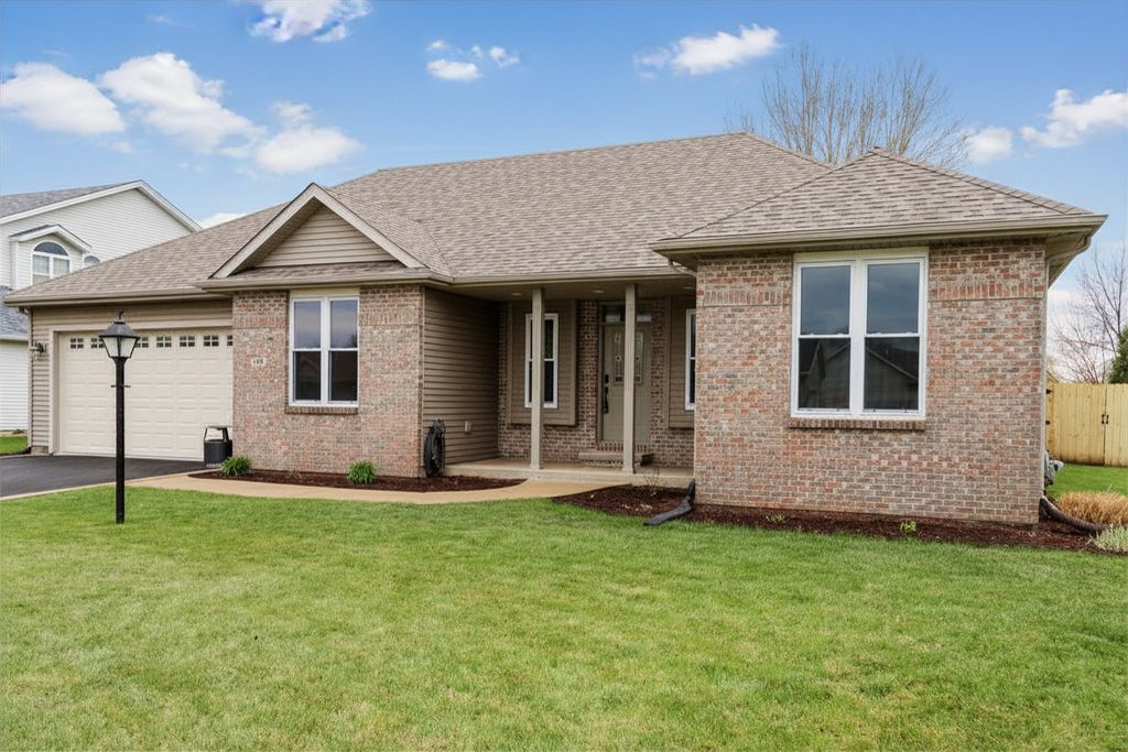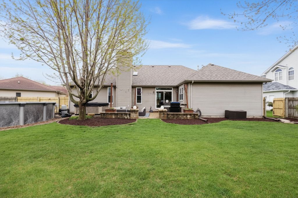 Exceptional 1,720sf ranch in Bradley offering 3 bedrooms, 2 baths, with a split floor plan. The living room is the showpiece with a cathedral ceiling, brick wood burning fireplace with gas starter, and two skylights with remote controlled blinds, filling the space with natural light. Kitchen offers all appliances, breakfast bar, table space, and adjacent formal dining room. Spacious primary suite includes a full bath with double sinks and walk in closet, while the main bath features a Jacuzzi jetted tub/shower combo. Step outside to the beautifully landscaped fenced backyard with mature lilacs, heated above-ground pool, shed, and brick paver patio with 220 VAC, perfect for entertaining. The fully finished, insulated 2 car garage impresses with wall organization, newer doors, upgraded keypad/fingerprint locks, and professional polyurea chip flooring. Major updates include roof (2026), furnace, water heater, and garage door (2019), plus updated Siemens electrical panel and breakers.