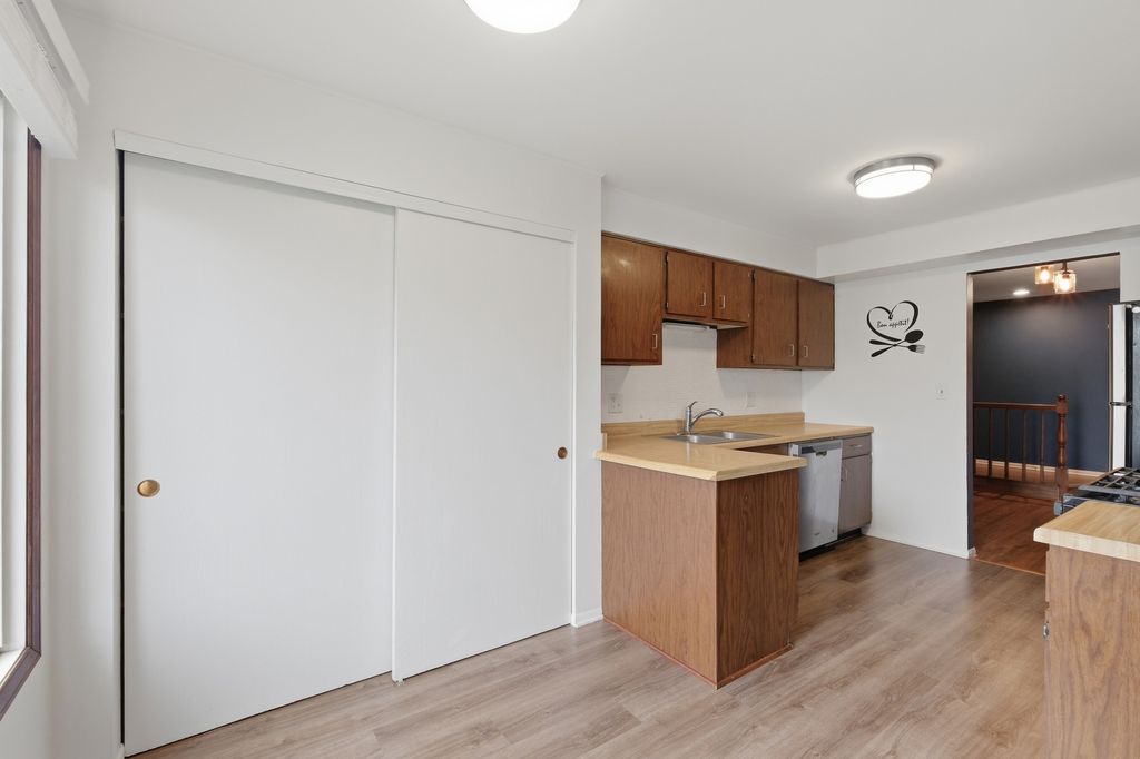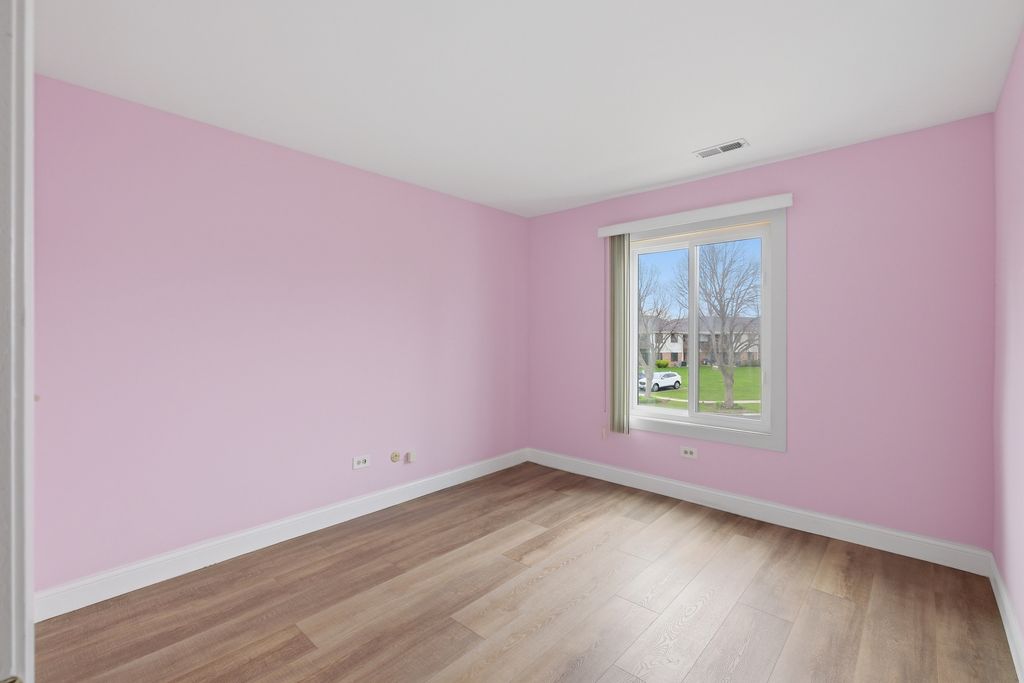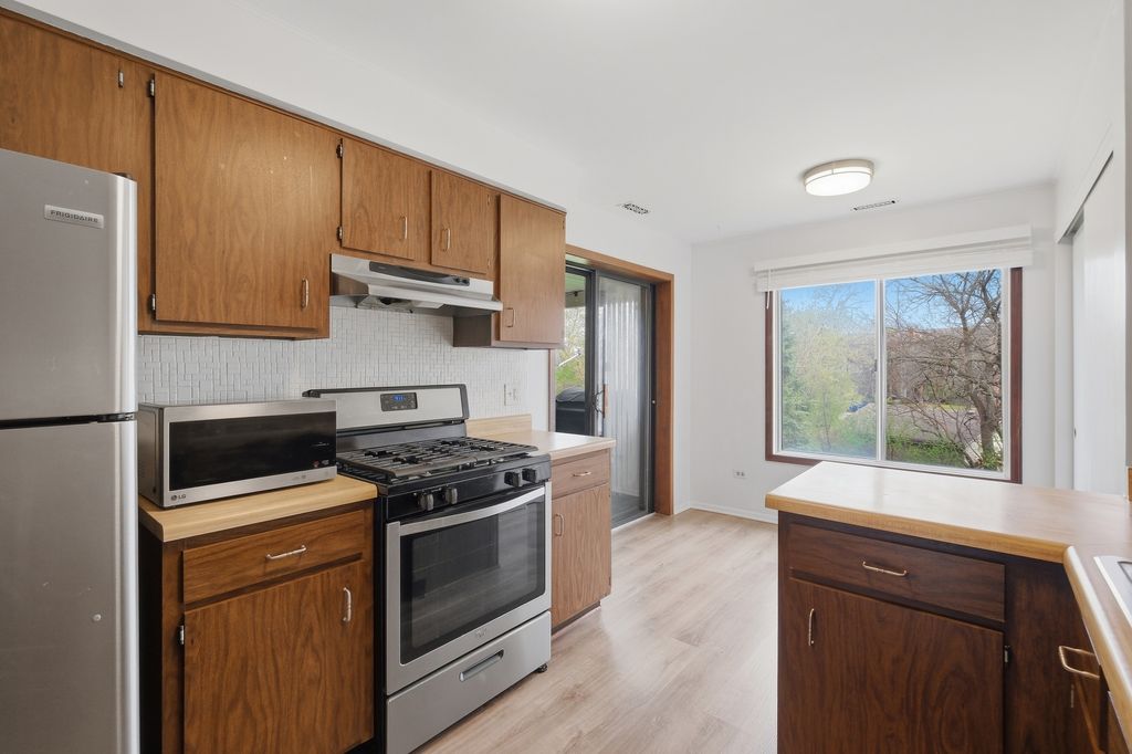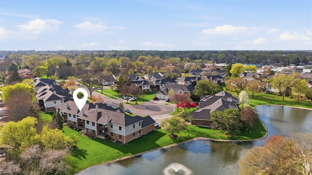 Well-maintained 2 bedroom, 2 bath coach home with a functional and comfortable layout. This unit features new flooring throughout and new windows in both bedrooms, providing great natural light. The kitchen offers stainless steel appliances, a pantry, and a separate eating area. The spacious living room includes a wood-burning fireplace and sliding doors that lead to a private 13x7 deck. The primary bedroom features a walk-in closet and a private bath. Generously sized second bedroom and full hall bath. Located on a quiet cul-de-sac close to shopping, dining, and Metra.