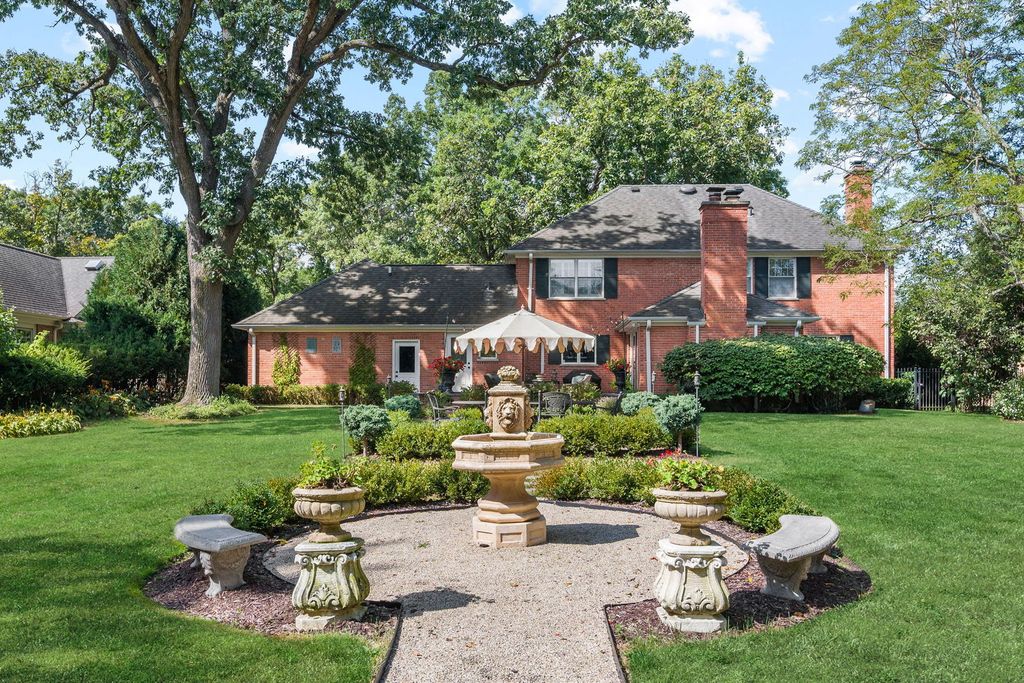Stately all-brick Georgian offering exceptional curb appeal, ideally positioned on a quiet street just off a cul-de-sac in the highly sought-after Meadowood neighborhood, steps from Meadowood Park and the scenic trails of Middlefork Savanna Forest Preserve.This beautifully updated home blends timeless architecture with modern enhancements and features hardwood floors throughout. The main level offers a gracious living room with wood burning fireplace, generous size dining room, and a family room with fireplace and new sliding doors opening to the bluestone patio. A newly renovated full bathroom and a fully renovated kitchen with a new island and sunlit breakfast area complete the space. A functional mudroom with laundry adds everyday convenience. Upstairs, the spacious primary suite features a beautifully appointed bathroom with walk-in shower and dual vanity, along with a custom-designed walk-in closet. Two additional bedrooms, a stunningly renovated guest bath, and a generous walk-in linen closet complete the second level. The finished basement provides additional living space along with abundant storage, offering flexibility for recreation, work, or organization. The professionally landscaped backyard is a true private retreat. Inspired by classic English garden design, the grounds feature lush landscaping, winding gravel paths, and a central fountain. Two bluestone patios offer multiple outdoor living spaces, including dining and lounging areas, all set within a private, beautifully maintained setting. Additional improvements include newer HVAC & AC, updated electrical panel, newer doors, and thoughtful system upgrades throughout.