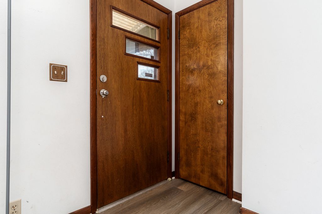 Welcome home to this inviting, well-cared-for property offering space and flexibility! The living room features new LVP flooring, while both bedrooms offer hardwood floors. The spacious kitchen includes oak cabinetry, flowing into a dining room that could be enclosed for a potential third bedroom. Just off the kitchen, enjoy the enclosed porch with first-floor laundry. All appliances stay, including washer and dryer. The lower level offers a large rec room plus bonus room, ideal for a home office or additional living area. Outside, enjoy a fenced backyard with a covered patio, garden, and storage shed perfect for relaxing or entertaining. Additional updates include newer central air and updated electrical. Roof (2018) and siding (2019) have been replaced, and solar panels will be paid off at closing. No payments to assume. Seller is offering a one-year home warranty. This home is an incredible value! Don't miss this one!