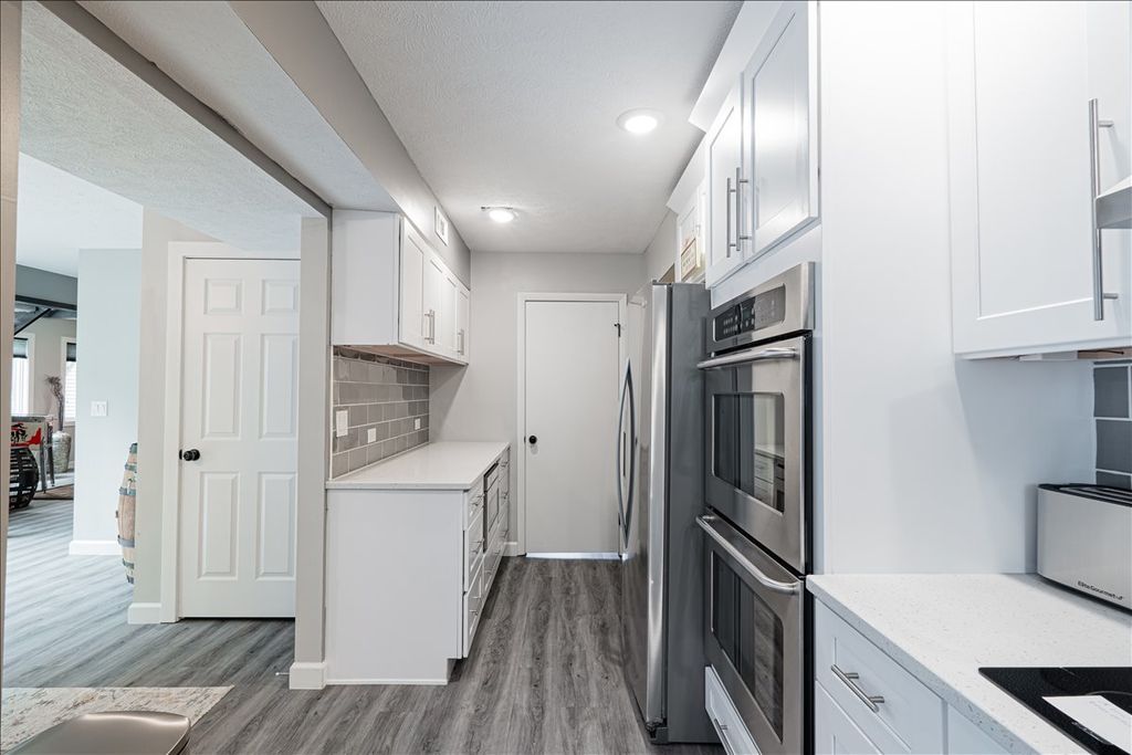 This is a very unique open concept 3-bedroom, 2-1/2 bath home was completely remodeled in 2022 including a show stopping kitchen offers new cabinets, quartz countertops, tile backsplash, under cabinet lighting, and stainless steel appliances. Beautiful natural light throughout, with Anderson windows and new casements. Large master bedroom with luxurious completely remodeled master bath and walk in closet with organizers. The home also features 2 additional bedrooms each with walk in closets, and loft space - perfect for home office, playroom and more! Hall bathroom with new vanities, tiled shower and tub. All new light fixtures throughout, new toilets, all new hardware, new LVP and carpet, and fresh paint. First floor laundry room with tons of storage. The backyard is fully fenced in (2022) and the entire yard was completely redone to include new sod, plants, mulch and arborvitaes (2024) for privacy. The garage features an electrical sub-panel (2024) with lots of storage and a 50-amp RV receptable that could be converted to an EV charger. Located in an established neighborhood with access to a Park, shopping and stores. Too many updates to mention, this is a must see!