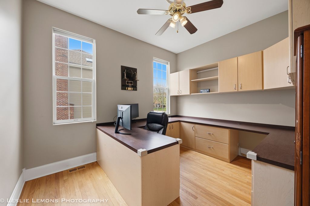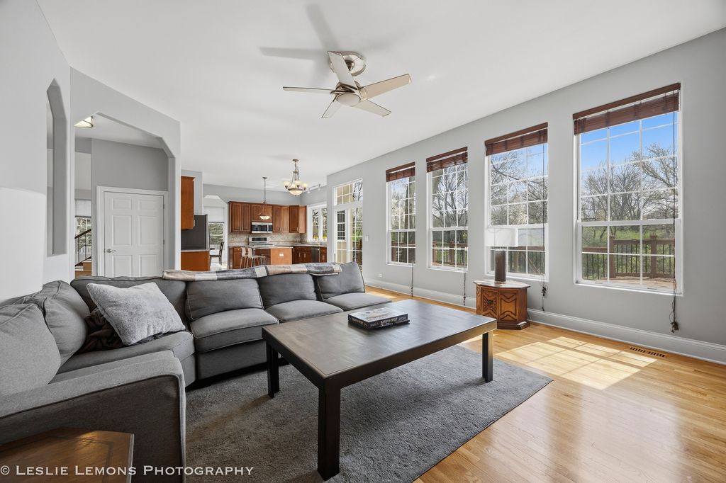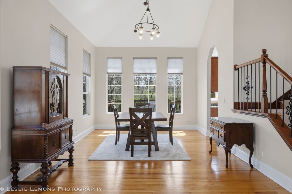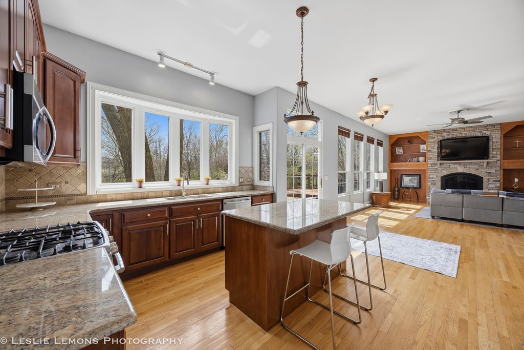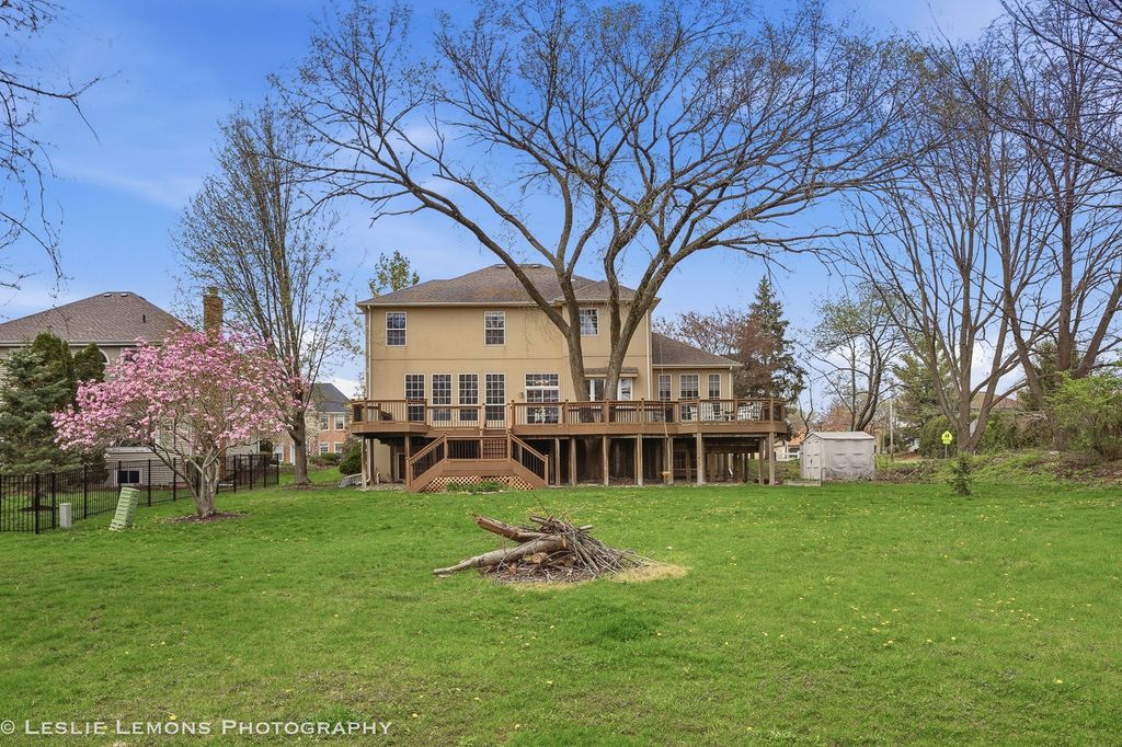 This beautiful 4-bedroom home in Batavia's sought-after Fox Trail North subdivision offers space, style, and an exceptional setting backing to the Illinois Prairie Path: Batavia Spur. The location combines neighborhood living with direct access to outdoor recreation, while still being convenient to downtown Batavia, the Fox River, shopping, dining, parks, and major roadways. The Prairie Path and nearby Batavia amenities are well-established local draws. Inside, the open-concept floor plan is filled with year round natural light thanks to soaring ceilings, tall windows, and desirable southern exposure. The spacious kitchen is designed for everyday living and entertaining alike, featuring granite countertops, stainless steel appliances, ceramic backsplash, abundant cabinetry, and amazing backyard views from large bay window. The kitchen flows seamlessly into the dining and living areas, while the inviting family room showcases custom built-in shelving and a striking stone gas fireplace. A main-floor den/office or future bedroom if desired, has custom built-ins and desk provides flexible space for work or study, and the first floor is finished with beautiful wood flooring throughout. A generously sized laundry room with extensive cabinetry adds everyday convenience and storage. Upstairs, the open staircase with black metal balusters leads to a loft area and four spacious bedrooms. The primary suite is a standout with its coffered ceiling, oversized walk-in closet with organizers and built-in shelving, and custom barn door. The updated primary bath features granite countertops, a spacious tiled shower, and new floor tile. The hall bath has also been updated with glass tile surround, ceramic tile flooring, a newer vanity, and granite countertop. The professionally finished basement expands the living space with super tall ceilings, above-grade windows, a media area, recreation space, built-in bar with sink, refrigerator, and cabinetry, plus a full bath-ideal for entertaining, guests, or related living flexibility. The rare 3-car garage adds even more appeal with work area and storage racks and cabinets. Out back, the huge yard opens to trees and open land for a peaceful natural backdrop. A large custom deck spans the full length of the home, creating excellent outdoor living space, and the custom dog run below offers a practical alternative to a fenced yard. With award-winning Batavia School District 101 ranked 10 out of 10 by US News, nearby parks and trails, and easy access to downtown Batavia's shops, restaurants, and riverfront charm, this home offers the best of comfort, convenience, and location.