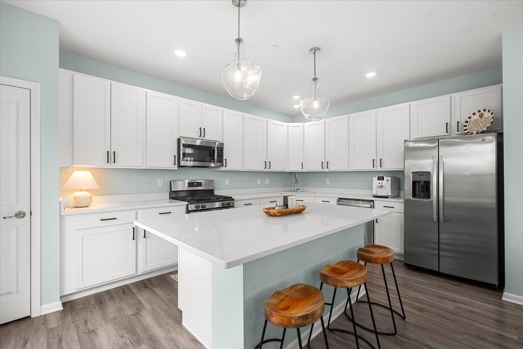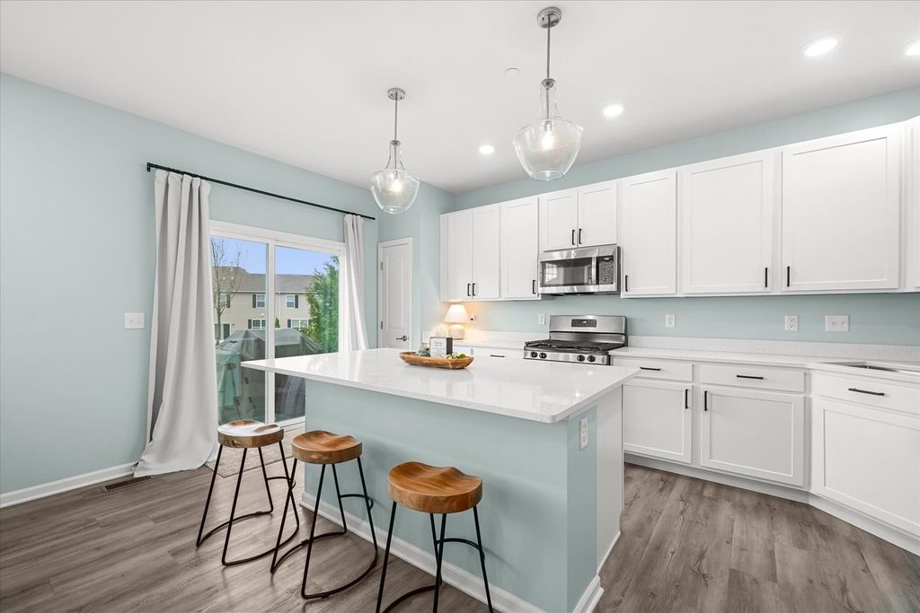 Gorgeous 3 bedroom + loft end-unit in sought-after Raintree Village pool & clubhouse community! Private entrance and bright, open floor plan with volume ceilings and abundant natural light. Feels like a model home with a chef's kitchen featuring quartz countertops, oversized island with seating, stainless steel appliances, upgraded cabinetry with hardware, and pantry. Kitchen opens to patio and deep, spacious backyard - perfect for everyday living and entertaining. First floor features 9-ft ceilings, luxury vinyl plank flooring & updated fixtures throughout. Private owner's suite with walk-in closet and spa-like bath with quartz dual vanities, designer shower. Incredible 15X15 upstairs loft space - ideal as a second living area or easily converted to a 4th bedroom and convenient 2nd floor laundry room. WiFi-certified smart home with modern technology already in place. Enjoy maintenance-free, resort-style living with pool, clubhouse, parks, walking trails and onsite middle school! Enjoy the good life with snow removal & lawn care taken care of for you in an exceptional Yorkville location. It's a must see!