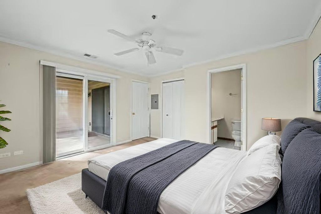 What an incredible opportunity to own a lovely, corner-unit condo in the highly sought after Chatham East neighborhood in Buffalo Grove! With a little TLC and your decorating ideas, this new home can be everything you have been looking for and more! What makes this corner unit so special is that there are not one but two large balconies for the lucky buyer to enjoy! As you enter the condo, you will be immediately impressed with the large living/room dining room and beautiful built-in fireplace! Galley kitchen boasts a large eating area plus sliders leading to the first balcony. The primary suite includes its own full bathroom, a large walk-in closet, ceiling fan, plus sliders leading to yet another large balcony...WOW! The second bedroom has a spacious closet plus access to a second full bathroom. For your added convenience, there is in-unit laundry which many condos do not have. You will also be delighted to find included in this low price an indoor parking spot in the heated garage plus plenty of outdoor parking. There is a practical storage space for each condo in the garage as well. Low HOA fees include: water, garage parking, common insurance, exterior maintenance, lawn care, trash removal, and snow Removal. Well-maintained building with elevator. Those who so desire can also take a few steps up to level one where this condo is conveniently situated...great to have options in this versatile location! Award-winning District 21 and District 214 schools including a short walk to highly claimed Buffalo Grove High School. Ideal location near shopping, restaurants, parks, walking paths, schools, swimming pools, expressway, fitness centers, Lake Arlington recreation area, the new Clove Town Center, and so much more! Better hurry, terrific condos that are offered at such a low price don't last long!