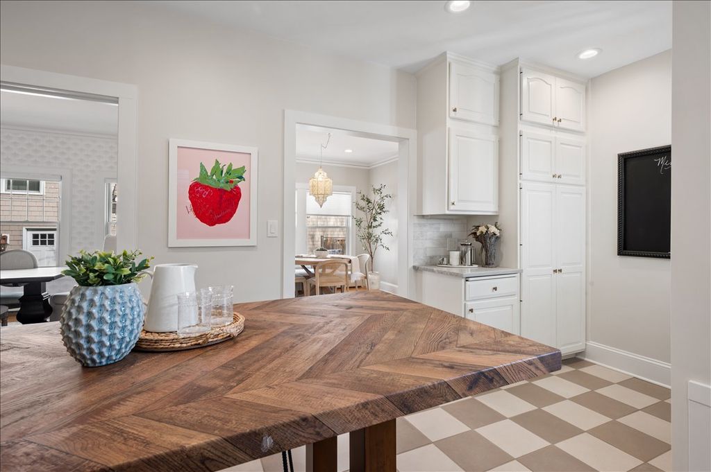 Reimagined, refreshed, and beautifully renovated, this 4-bedroom plus office, 2 full and 2 half bath home is ideally situated in a prime East Winnetka location-just moments from Greeley, New Trier, the Indian Hill Metra stop, beaches, and parks. A thoughtfully designed main level offers a seamless flow between formal and informal living spaces. The inviting living room is anchored by a gas fireplace with a refreshed brick surround and opens to a gracious dining room enhanced with designer wallcovering. The refreshed kitchen features painted cabinetry, a mix of butcher block and quartz countertops, a custom backsplash, updated hardware and fixtures, and a versatile freestanding island. Adjacent to the kitchen, a charming breakfast room opens to the family room, complete with newly installed recessed lighting and sliding glass doors leading to the patio and backyard-perfect for everyday living and entertaining. A newly created mudroom provides an ideal drop zone for coats, shoes, and backpacks, while an updated powder room completes the main level. Upstairs, the spacious primary suite resides with three additional bedrooms, a refreshed hall bath with new tile, fixtures, and a painted vanity, and a generous second-floor laundry room featuring a folding counter, ample cabinetry, and side-by-side washer and dryer. The primary bath has been tastefully updated with professionally painted cabinetry for a fresh, modern feel. The newly finished lower level is truly exceptional-professionally waterproofed with drain tile, a new sump and ejector pump, and enhanced with new flooring, recessed lighting, and reconfigured plumbing for improved ceiling height. This level also includes a dedicated office and an additional powder room. A large, private, fully fenced backyard with garden beds and a 2.5-car garage completes this exceptional home.