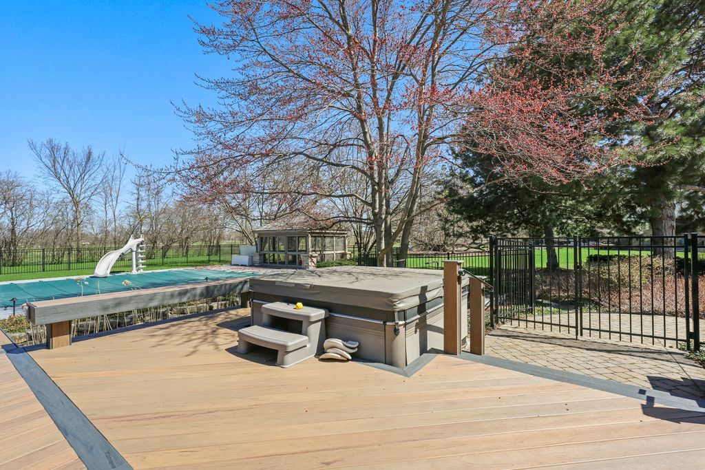 This is the one buyers wait for-and rarely find. Perfectly positioned on a premium 1.06-acre lot overlooking the golf course, this exceptional 5-bedroom, 4.5-bath estate delivers the lifestyle, space, and upgrades today's buyers demand. From the moment you arrive, the curb appeal is undeniable-an expansive front porch, circular driveway, and meticulously curated landscaping set the stage for what's inside. The heated 3-car garage with a high-end epoxy floor adds both function and polish. Step into a dramatic two-story foyer with a sweeping staircase and sun-drenched open layout that immediately impresses. The kitchen-completely move-in ready and impeccably maintained-features premium cabinetry, extensive storage, and a large center island designed for gathering, hosting, and everyday living. The indoor-outdoor flow is seamless. Step out onto a massive maintenance-free composite deck and into a backyard that truly sets this home apart. This is not your typical outdoor space-this is a private resort. Enjoy one of the largest residential heated pools in its class (20' x 40'), a sunken hot tub, auto cover, updated mechanicals, and a poolside gazebo-everything already done for you. Add in a fully fenced yard, gas firepit, and professionally designed landscape lighting, and you have an entertainer's dream that looks just as stunning at night as it does during the day. Inside, every space is designed with purpose. Three fireplaces create warmth and character throughout. Multiple living and entertaining areas give you flexibility for both large gatherings and quiet evenings. A main-level bedroom with a full bath offers ideal guest accommodations or a private office suite. Upstairs, four additional bedrooms include two expansive primary suites-perfect for multi-generational living or ultimate comfort. One suite captures breathtaking views of the pool and golf course, delivering a true retreat experience. Major upgrades? Already done. New DaVinci composite roof, whole-house generator, three-zone HVAC, whole-home water filtration system, EV-ready electrical, CAT6 wiring, and full security prewiring-this home is fully equipped for modern living. The location seals the deal-just minutes from historic downtown Long Grove, with top-rated schools including Kildeer Countryside District 96 and Stevenson High School. Homes with this combination of lot, layout, upgrades, and outdoor living simply don't come available often. Move fast-this is a standout property that buyers will compete for. Schedule your private showing today.