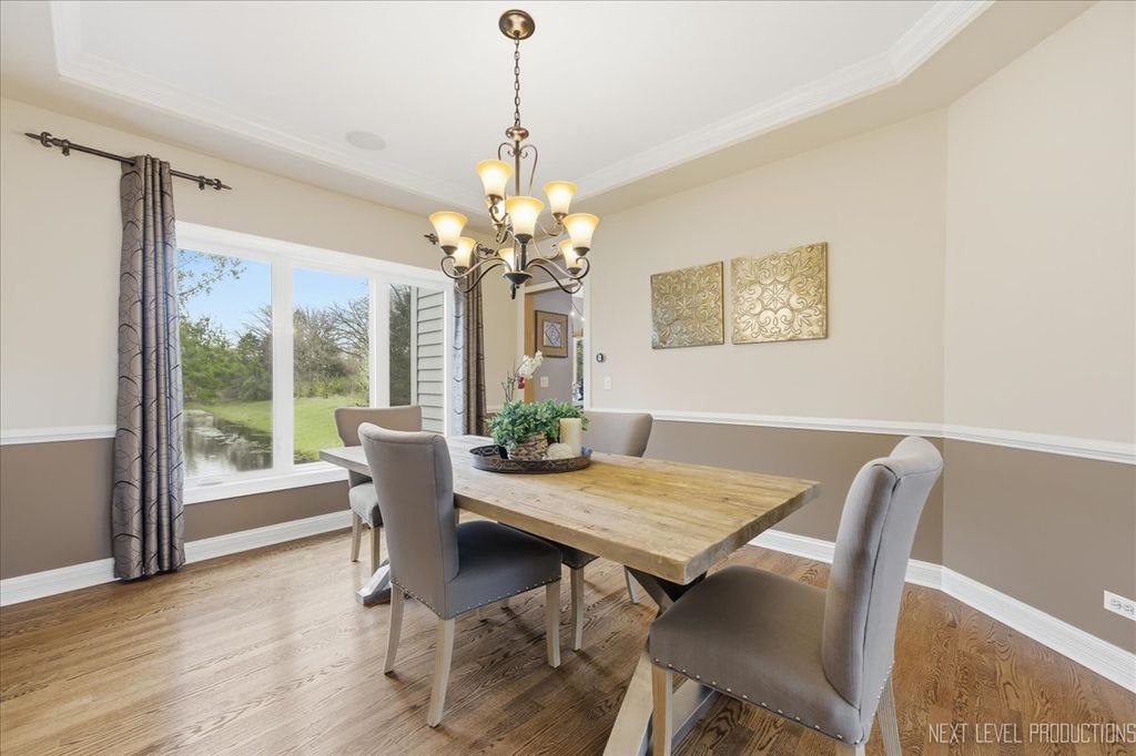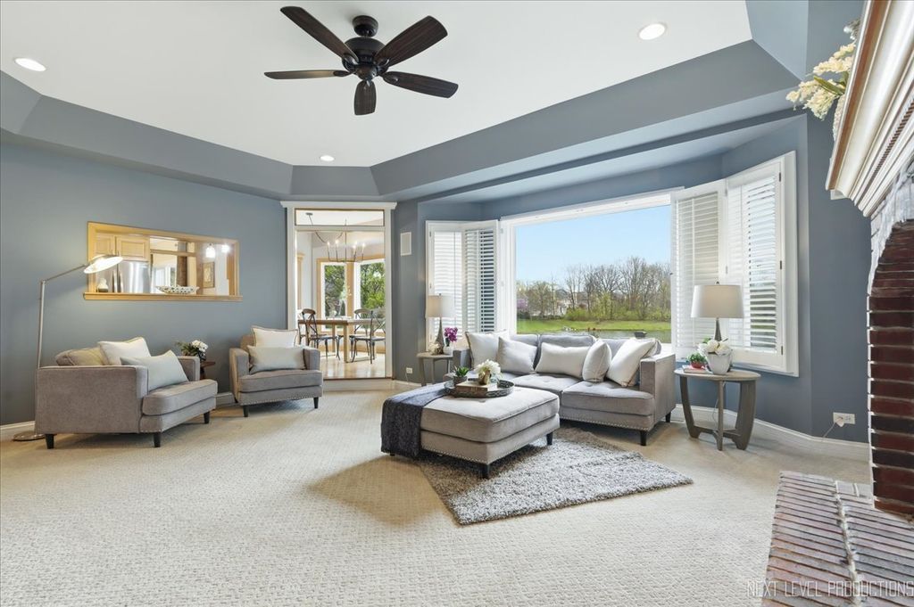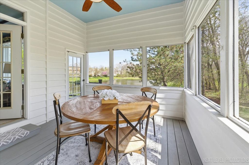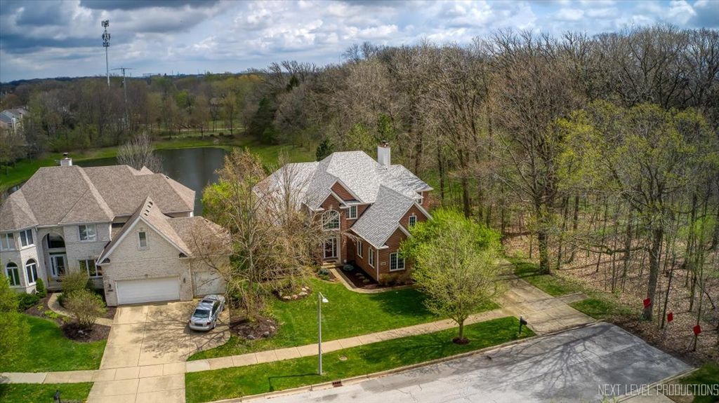 Welcome to this exceptional 4-bedroom, 3.5 bath home in Aurora, offering a premium pond setting and thoughtful design throughout. This custom-built home is full of pediments and architectural detail, located in the sought-after Ginger Woods subdivision with a coveted pond setting that carries throughout the home. Inside, a two-story foyer opens to a spacious living room filled with sunlight and framed by pond views. The kitchen is perfectly designed for both home chefs and entertaining, featuring 42" raised maple cabinets, quartz countertops, newer hardware, and a functional layout that flows effortlessly into the main living spaces. The dining room and family room boast extraordinary bay windows, bringing in an abundance of brightness and adding warmth and beauty to everyday living. The abundance of thoughtful details, from plantation shutters to wide open living spaces and a classic brick fireplace, creates a home that truly feels like a sanctuary. A main-level fifth bedroom with a closet is currently being used as a private office, offering flexibility to fit your lifestyle, whether used as a workspace, guest room, or additional living area. Nearby, the hallway off the laundry room has been thoughtfully transformed into a functional mudroom area, adding convenience to everyday living. The primary suite is positioned to capture peaceful pond views and features a large walk-in closet with custom built-ins and a private ensuite bath complete with a jacuzzi tub and a new skylight that fills the space with soft, natural illumination. Additional bedrooms are generously sized, including one with its own large walk-in closet. The three-season Sun room offers additional living space and overlooks the water, creating a seamless extension of the home's living areas. Full English basement has been custom finished, designed for both entertaining and everyday living. Enjoy a dedicated media area with built-in ceiling speakers, along with a well-appointed bar featuring built-in granite countertops, custom cabinetry, and wine and beverage refrigerators. PLUS the large windows allow for continuing water views. Perfect for entertaining! The Ample storage is seamlessly integrated with built-in closets and shaker-style doors. The exterior features a newly replaced roof in April 2026 with a 50-year warranty, a brand new skylight in 2026, Original windows replaced with Maintenance free in the entire home including the side-load 3-car garage. Outdoor living is elevated with a newer maintenance-free deck (2025), perfectly positioned to take in the serene water views. Additional recent updates include a newer HVAC system (furnace and AC, 2025) with a 10-year warranty, along with a newer dishwasher and refrigerator (2025), offering both comfort and peace of mind. The washer and dryer were replaced in 2023. Located within the Batavia School District 101 with great proximity to downtown Aurora, downtown Naperville, the Route 59 Metra platform, and more. Ginger Woods offers a beautiful community setting, on a quit street that dead ends with mature trees all around the home, enjoy sidewalks, community park, access to Prairie Path with access to the Fox River Trail. Relocation package providing a home warranty. Do not wait, call to schedule your private tour today!