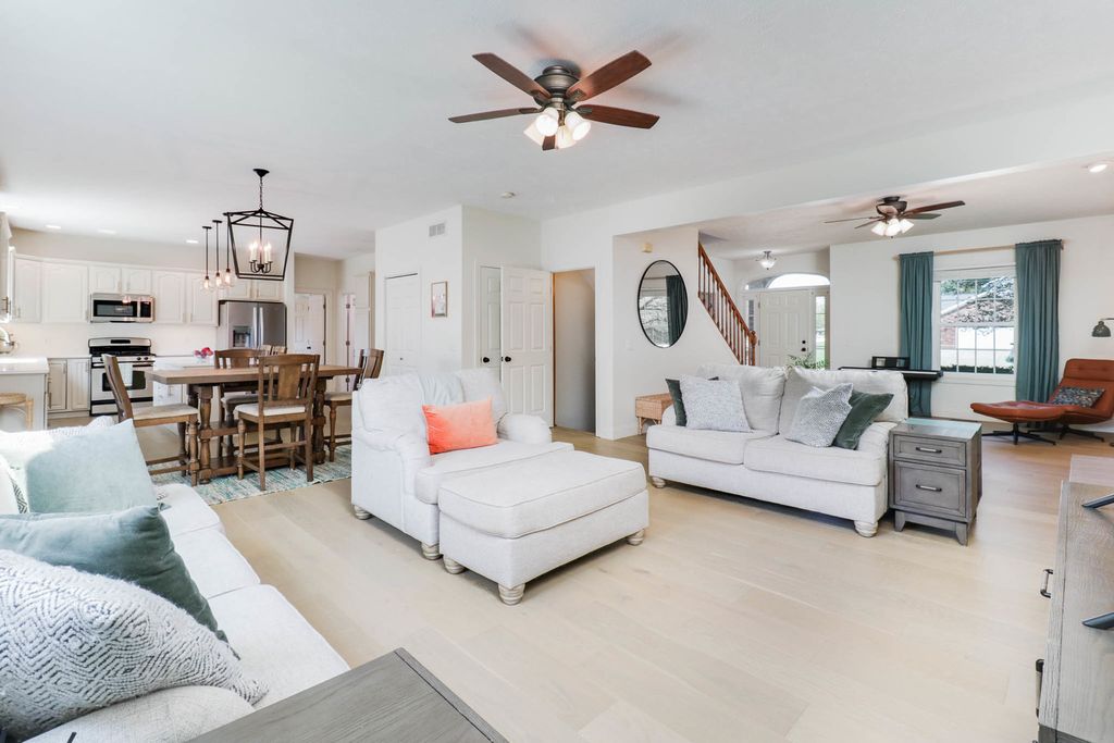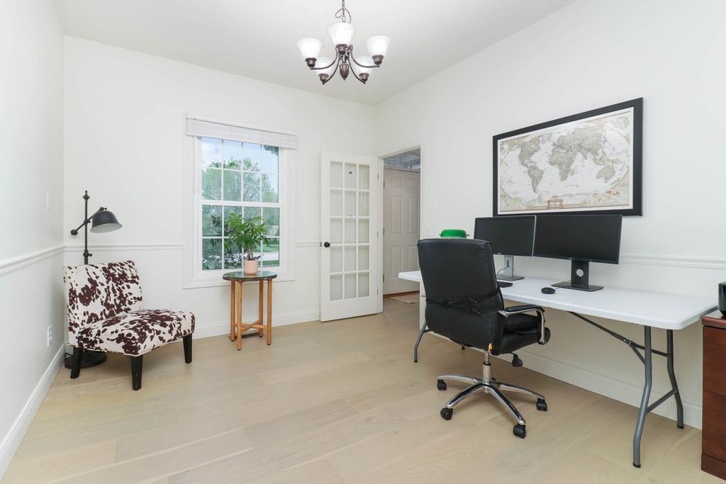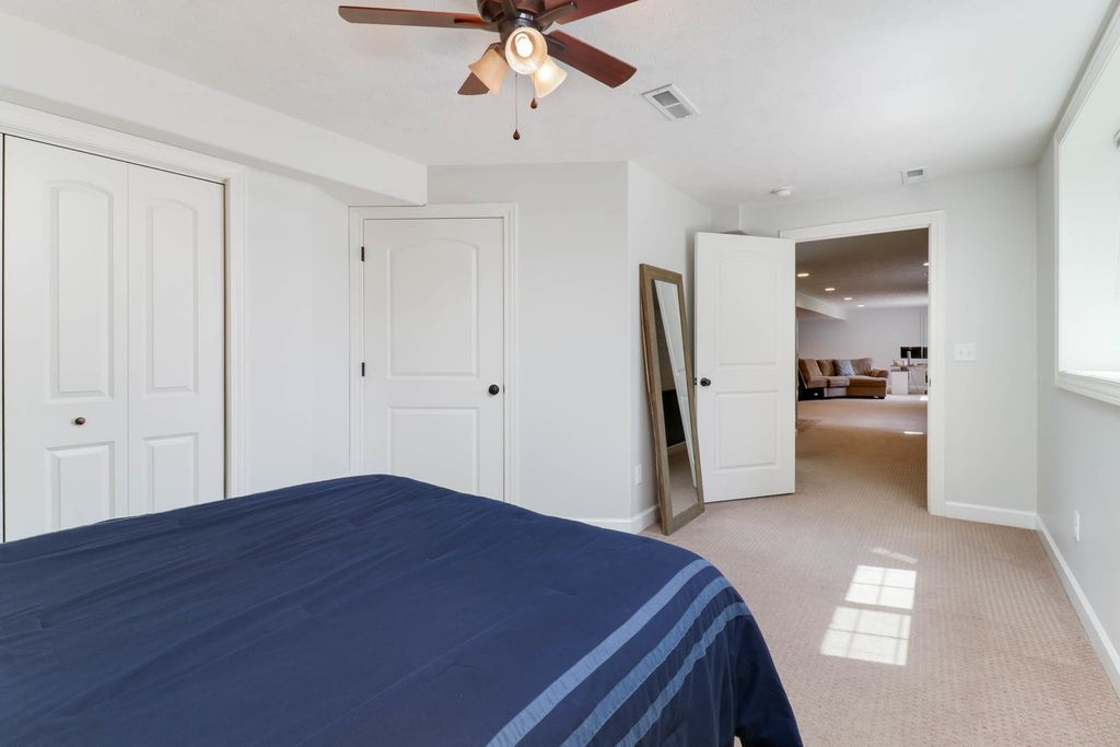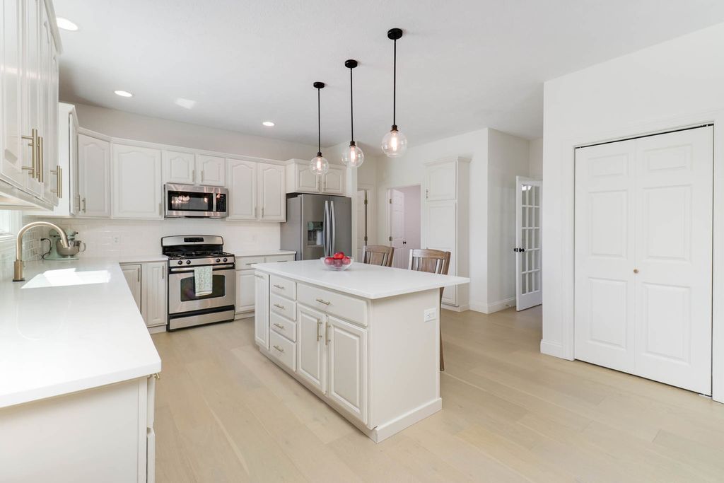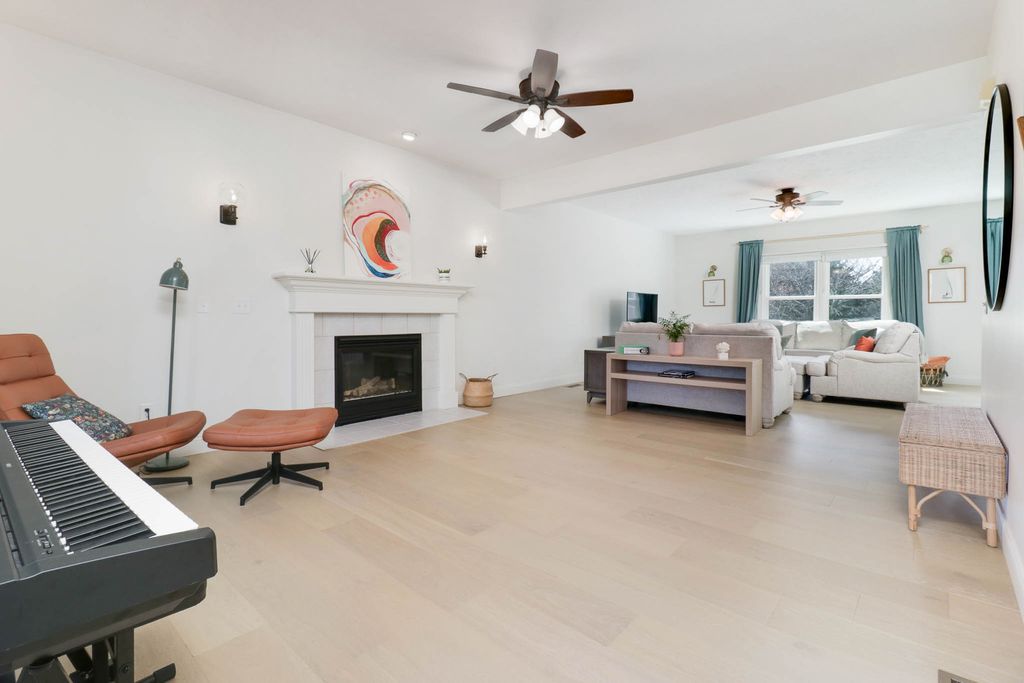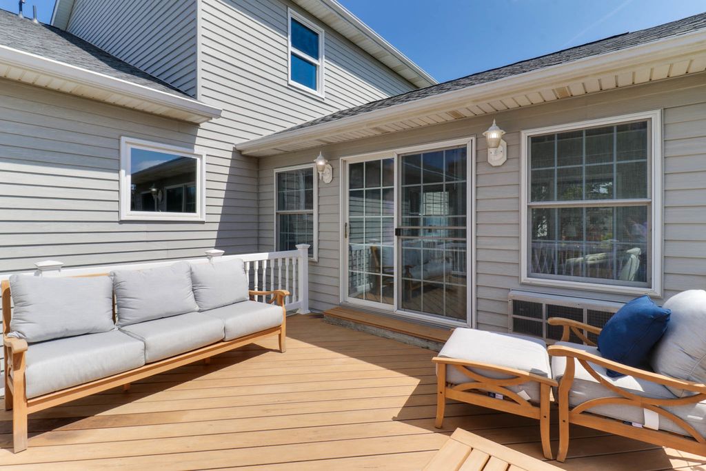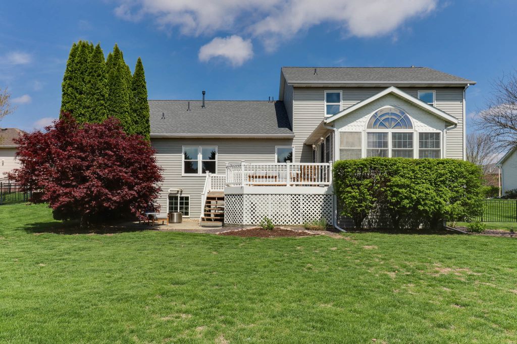 Stunning SIX bedroom home in Hawthorne II with space for everyone and tons of storage! So many updates!! Open Concept. Updated kitchen features new quartz countertops and backsplash (2025) painted cabinets, new hardware, new sink/faucet and light fixtures (2025). Stainless steel appliances- refrigerator (2019), dishwasher (2025) and microwave (2024). Also a pantry, and island with breakfast bar! Off the kitchen is a darling sunroom. Spacious family room, living room and office area. New engineered hardwood flooring and paint throughout most of the 1st floor (2025). Main floor master bedroom with walk-in closet and updated master bath including granite countertops, tile shower, and whirlpool tub. Designated laundry area. Upstairs you will find 4 bedrooms with good closet space and 1 full bathroom. Designated HVAC controls for 1st floor, master bedroom and 2nd floor. Entertain in the huge, recently updated basement with daylight windows, wet bar area- microwave (2021), 6th bedroom and full bath! Newer baseboards (2021), Shiplap (2022). Heated garage with 33ft deep 3rd stall is perfect for storing your boat or other outdoor toys! Enjoy the large, fenced backyard lined with mature evergreen trees from the composite deck or lower patio area. 9-foot ceilings throughout main level. Other major updates include: Roof (2025). Newer windows throughout (2023) (minus the sunroom). Both AC units updated (2021 & 2022). One furnace updated (2025), Newer water heater (2020).