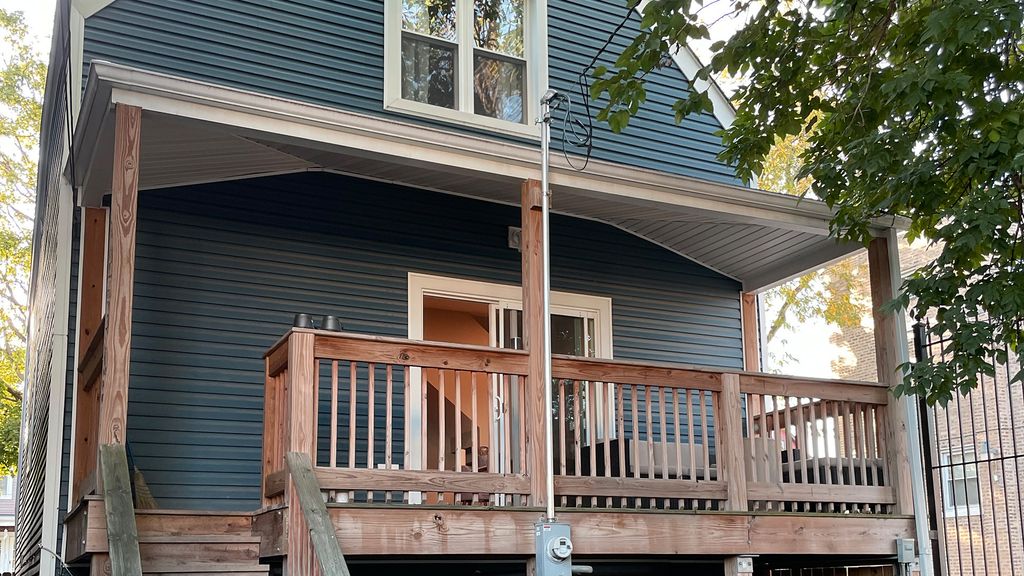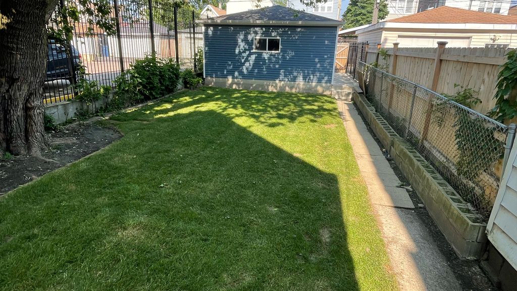 Beautifully renovated 4-bed, 3-full-bath single-family home on the Humboldt Park / Hermosa border. Meticulously updated from top to bottom by owner (not a flip): new hickory hardwood floors, high-end quartzite kitchen counters, new basement epoxy floor, new trim, hickory hardwood stairs with pine stair skirts, premium shower panels and updated plumbing, deep black stone sink, garbage disposal, new Bosch dishwasher. Dramatic 11-12ft high ceilings on the main floor, kitchen and living room. Finished 848 sqft basement adds a flexible rec room / guest suite with full bath. Outside: No adjacent neighbor on the north side - open sightlines and abundant natural light. Recently sodded fully fenced-in yard. Detached 2-car garage with new gutters, new smart garage door, keyless entry, and alley-facing security camera. Walk to the 606 trail, cafes, Logan Square dining, and the Blue Line. Meticulously maintained - renovation documentation available. Smart-home ready with Nest thermostat, Nest video doorbell, and keyless smart deadbolt front door.