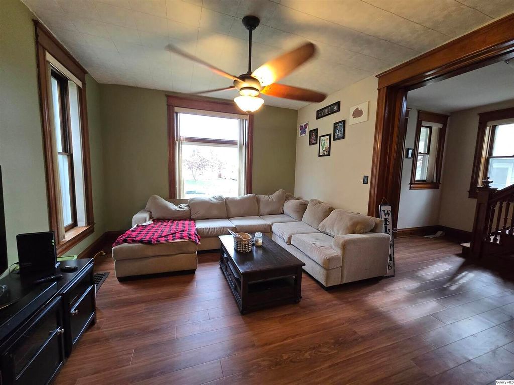 This 2 story home has so much space with 4 bedrooms and 2 full bathrooms. You see the beautiful woodwork on the staircase when you walk in, on the pocket doors and trim. The updated kitchen has exposed brick and tiled floor. New flooring in 2023, updated upper bathroom in 2023. Water heater in 2021, hot water lines in 2025, cold water lines in 2016, as well as dual control HVAC in 2016. The backyard is enclosed with 5 ft fence in 2019. 2 car detached garage with new electric in 2021. There is a large floored attic that could be finished. Taxes reflect VA Exemption.