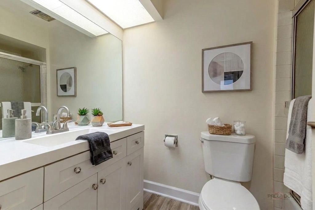MAINTENANCE-FREE LIVING | COURTYARD VIEWS | PRIME LOCATION | HIGHLY RATED SCHOOLS. Set in a peaceful second-floor position overlooking the courtyard, this refreshed 2-bedroom, 2-bath condo offers a comfortable, easygoing lifestyle with a bright and welcoming feel throughout. Fresh paint and brand-new carpet give every room a clean, updated finish that's ready for immediate enjoyment. Natural light fills the living room, creating a relaxed everyday space that connects effortlessly to the dining area; an inviting spot for morning coffee, weeknight dinners, or hosting with ease. A ceiling fan adds both comfort and charm to the space. Just off the dining area, the kitchen provides ample cabinetry and generous counter space, making meal prep and storage simple while still keeping everything within easy reach. The primary bedroom offers a calm retreat at the end of the day, complete with three closets and a private en-suite bath that has been fully updated with new flooring, lighting, a modern vanity, and a new toilet. The second bedroom is nicely sized with a large closet and works well for guests, a home office, or flex space, and is located near the second full bath, which has also been refreshed with new finishes for a consistent, modern look. With maintenance-free living, everyday convenience is built in, allowing more time to enjoy the home and less time spent on upkeep. Includes one assigned parking space, an additional unassigned space, and a storage unit conveniently located on the second level. Ideally located in a sought-after school district and just minutes from major expressways, shopping, dining, and daily necessities, this home blends comfort, practicality, and an easy location for everyday living.