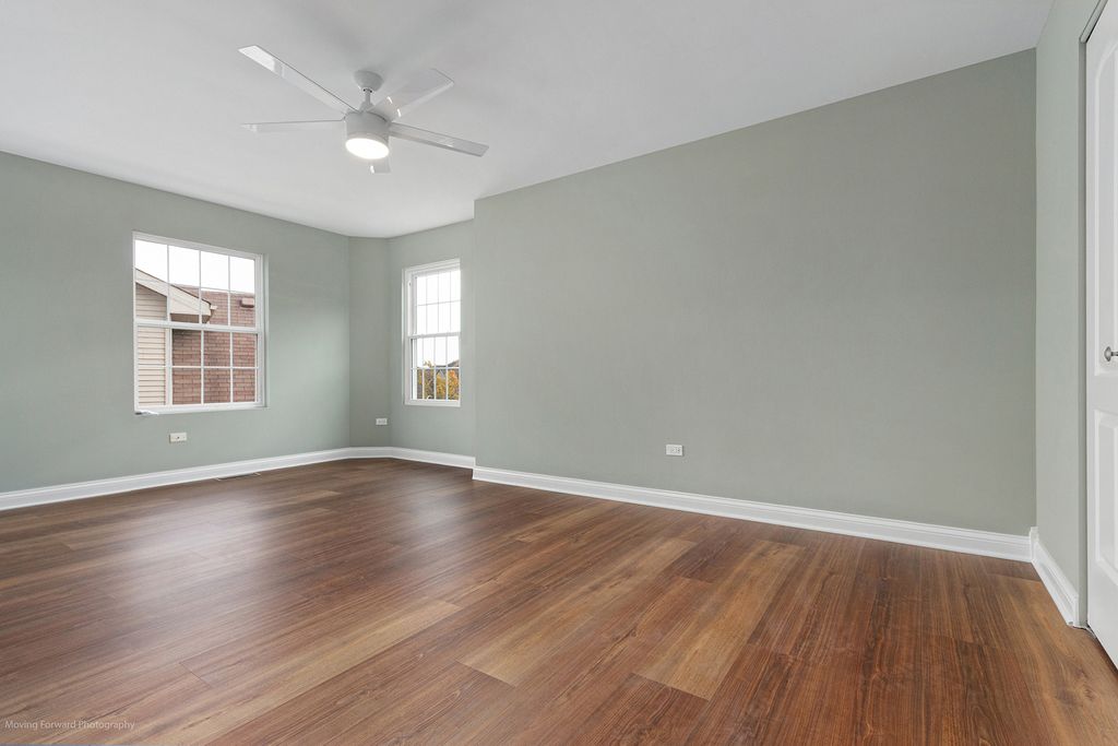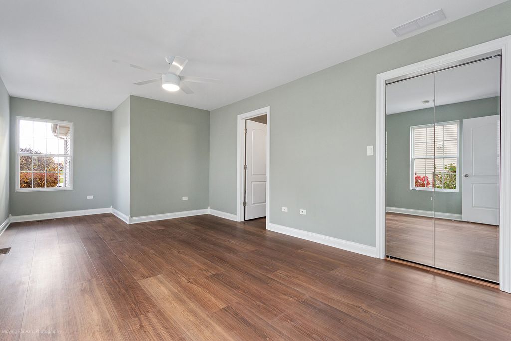 No yardwork, golf course views! This great house in The Preserve at Cardinal Creek is ready for you. Enjoy golf course and pond views outside your dining space and living room. Just refreshed with all new LVP flooring, house was completely painted including ceilings, all trim and doors, all new Kohler toilets, new large vanity in upper bath. All new light switches and electrical outlets including one per room with USB-A and USB-C plugs. New ceiling fans with remotes in all 3 bedrooms. Great layout with vaulted ceilings in the living room and kitchen. First floor master with two large closets. Upstairs are two good sized bedrooms, a large bathroom with skylight, and space for a desk. The unfinished basement has large windows and offers a lot of potential. New sump pump, newly injected cracks, and interior drain tile system come with warranty, basement floor just painted. Management company takes care of all yard maintenance and snow removal on driveways and path to front door. Also, most exterior items are covered as part of your dues. Make your offer!