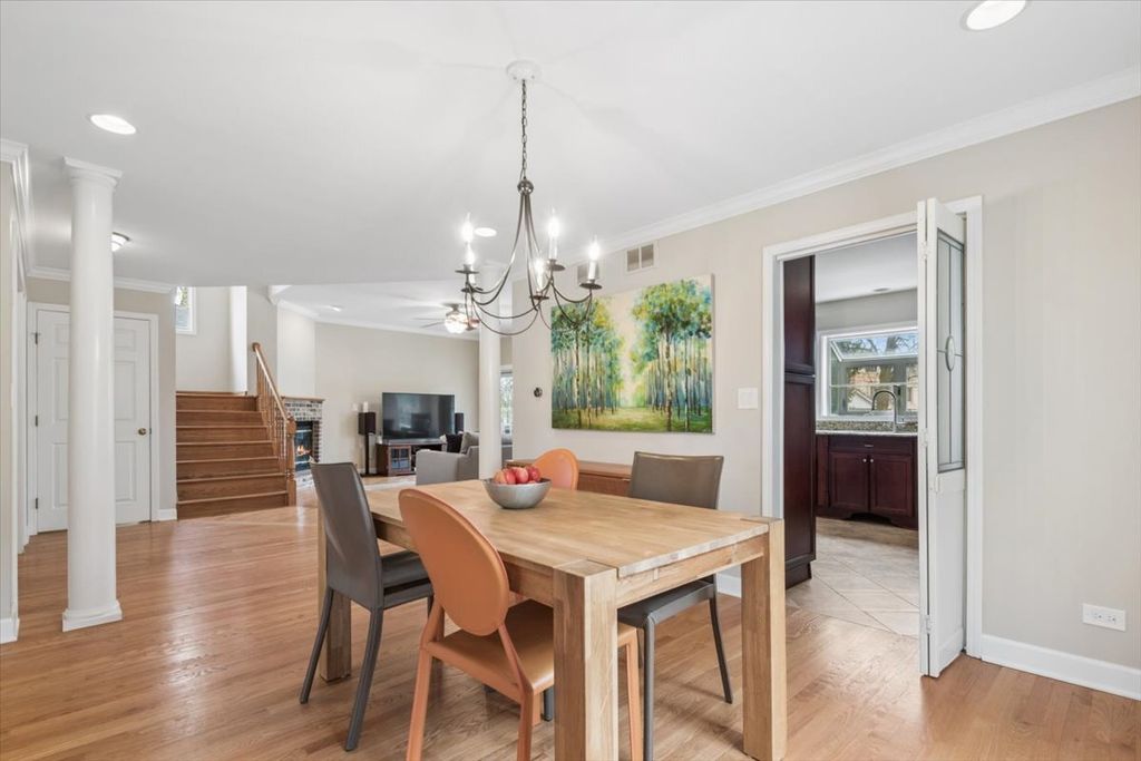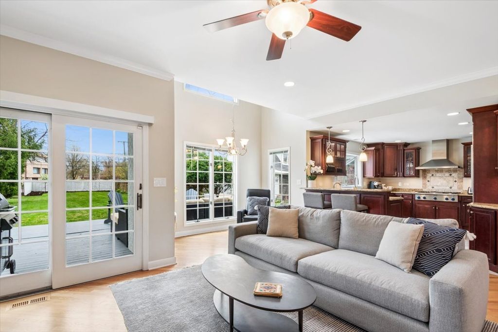 Discover this bright and spacious home on a generous lot in the historic Frederick Olmsted-designed Riverside. This residence features a desirable floorplan, complete with an attached two-car garage. The home showcases beautiful hardwood floors on both the first and second floors. The large living room features elegant pocket French doors that seamlessly connect to the dining and family rooms, offering flexibility for entertaining and everyday living. The kitchen includes custom cherry cabinets, a granite breakfast bar, and high-end appliances, including a new Thermador refrigerator and a double dishwasher-an ideal space for culinary enthusiasts. The kitchen also connects to the family room, which features a gas log fireplace and sliding doors leading to an expansive deck with a Weber grill and gas line, as well as a lush backyard. On the second floor, a spacious landing offers endless possibilities for use. The primary suite serves as a true retreat, featuring a walk-in closet with a custom organizer and an ensuite bathroom equipped with a double vanity, whirlpool tub, and separate shower. Three additional spacious bedrooms complete this level, all with large closets. The full 32'x 41' unfinished basement currently functions as a workout space, laundry area, and large recreation space. It boasts high ceilings, updated electrical, fresh paint, overhead sewer, and endless potential. Improvements to this beautiful home include a newly renovated mudroom and powder room off the garage entrance, updated outlets and neutron switches throughout, new can lights and ceiling fans, a new sump pump with battery backup, a new ejector pump, fresh landscaping, and new paint throughout. Best of all, this home is conveniently located near schools, restaurants, parks, and the Metra, allowing for a quick 15-minute trip into Chicago.