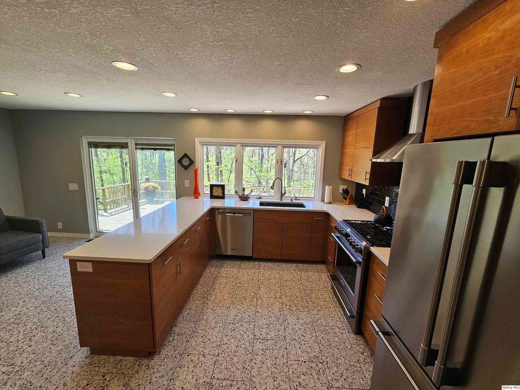 You won't want to miss this stunning home! This beautifully updated 4-bedroom, 3 full bath property truly has it all. The stylish mid-century modern kitchen is a standout feature, complemented by a built-in bar that seamlessly connects the kitchen and living space, perfect for entertaining. Enjoy cozy evenings with two fireplaces, including a charming wood-burning option.The partially finished basement offers additional living space along with an expansive workshop area, ideal for hobbies or storage. Step outside to a spacious double deck overlooking a peaceful wooded backdrop, where you can relax with your morning coffee and take in the surrounding wildlife. Tucked away at the end of a quiet cul-de-sac, this home offers both privacy and a serene setting while still providing all the modern updates you're looking for., Utility Supplier: Liberty Utilities