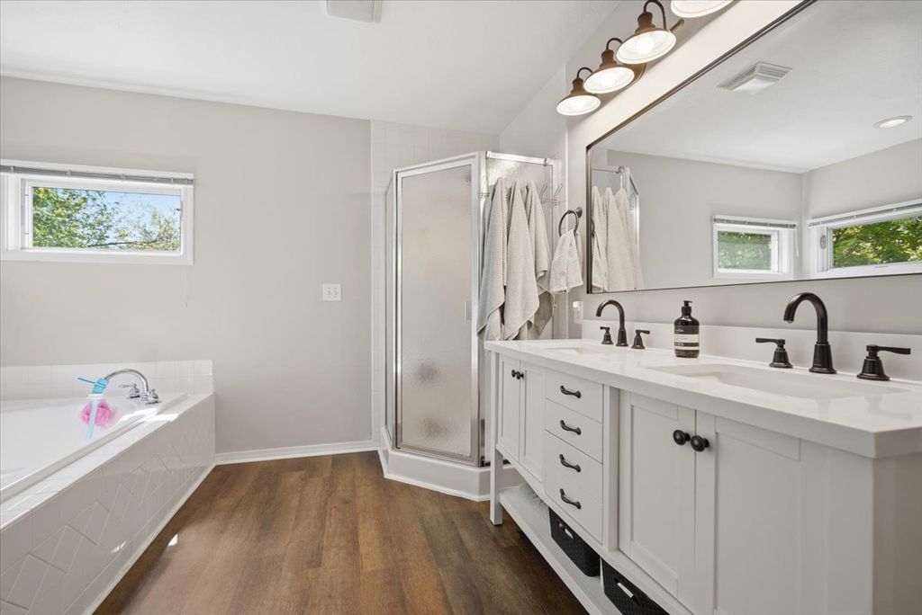 Updated 3 bedroom 2.5 bath home perfectly located near Uptown, Anderson Park and the Mall. Primary bedroom comes with an updated bathroom (2025) and enormous walk in closet! Remodeled kitchen with new stainless appliances (2025) is open to a 22 foot wide family room featuring a fireplace and new built ins. Separate dining room with wood floors can also be used as flex space. Newer washer and dryer on main level also stay. Backyard is shaded by mature trees and comes with a new gazebo (2025), patio and playhouse. Basement is ready to finish with rough in for bath. Garage has extra space in back for workshop or storage. Won't last!