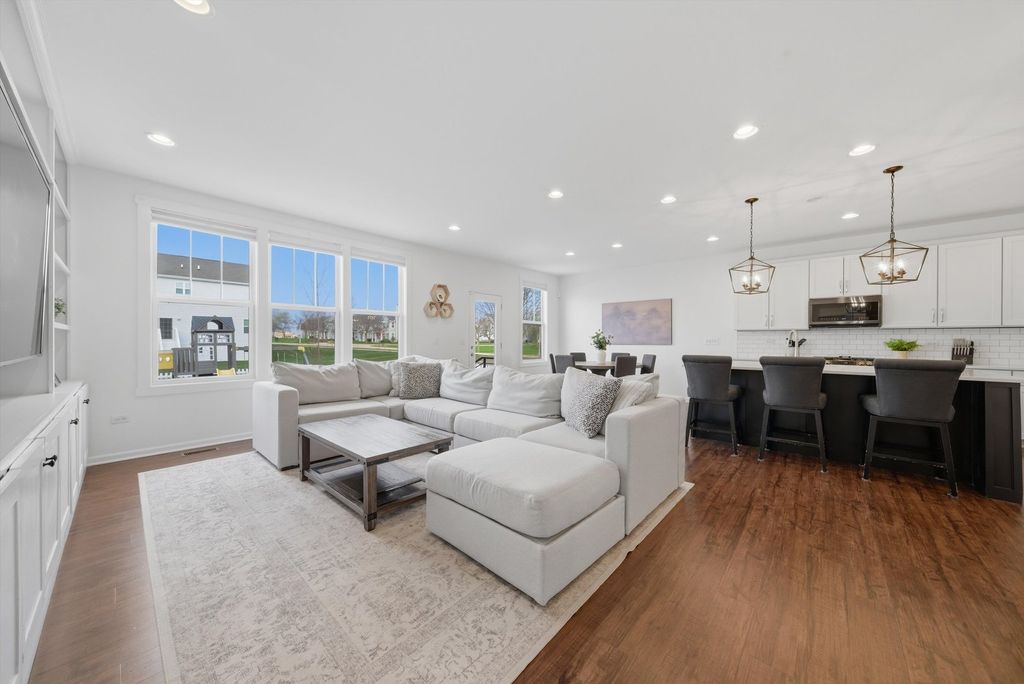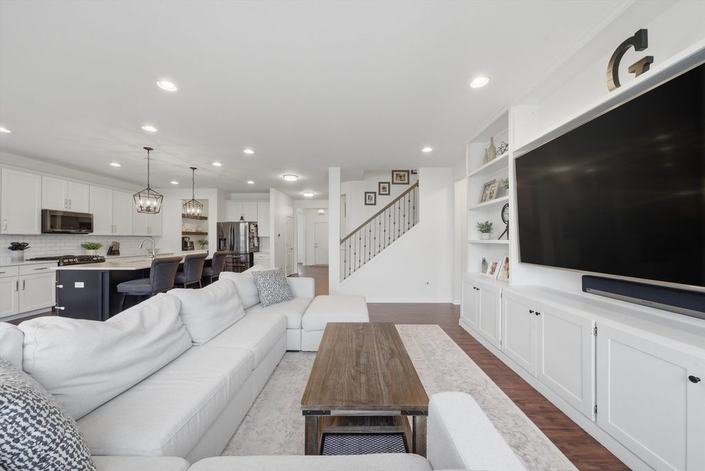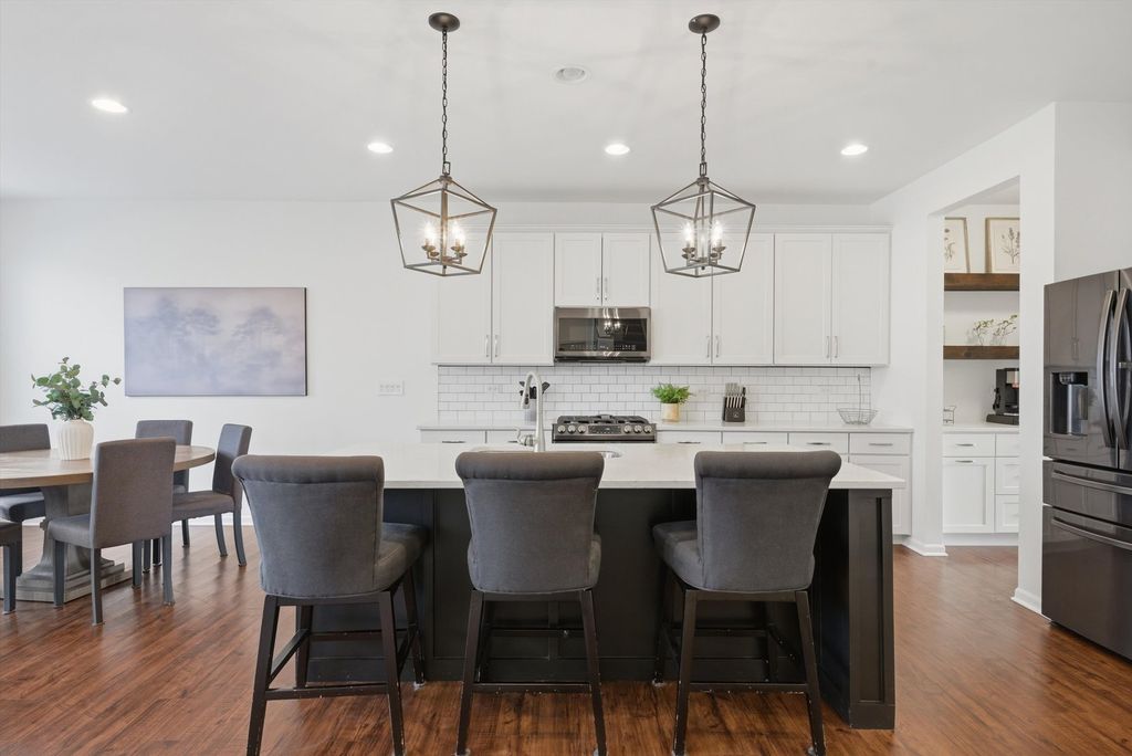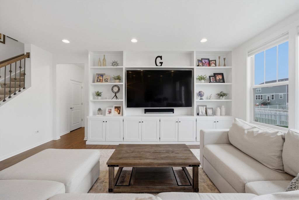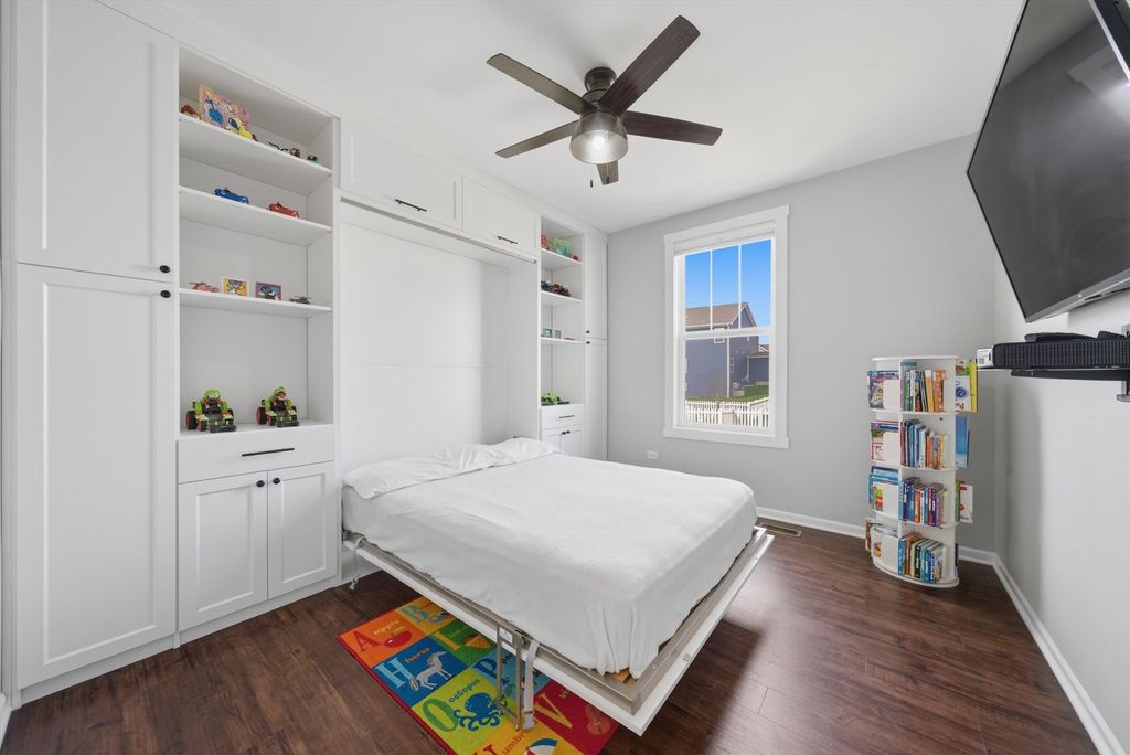 Welcome to this exceptional home in the highly sought-after Settlers Ridge subdivision of Sugar Grove! This beautifully maintained residence offers 4 spacious bedrooms, all located on the second floor, including a luxurious primary suite with dual walk-in closets. A generous loft provides flexible space for a second living area, media room, or relaxing retreat. The impressive, oversized kitchen features white cabinetry, subway tile backsplash, quartz countertops, stainless steel appliances, and a large island with pendant lighting-perfect for everyday living and entertaining. The open layout flows seamlessly into the dining area and family room, highlighted by a custom-built entertainment center. A versatile main-level flex room includes a custom Murphy bed with built-in storage, ideal for guests or a home office. The mudroom offers added functionality with a custom hall tree bench, storage drawers, and a built-in workspace. Enjoy the private backyard with a modern paver patio and maintenance-free vinyl fencing-perfect for outdoor gatherings. Additional features include an oversized 2.5-car garage with extra storage and a driveway with a professional-grade basketball hoop. This home offers the perfect blend of space, style, and convenience-schedule your showing today!