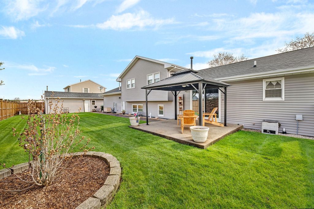 This well-maintained, single-owner split-level home offers the perfect blend of comfort, space, and style. A welcoming foyer greets you upon entry, complete with a convenient coat closet. The bright and airy living room features beautiful hardwood floors and large windows that fill the space with natural light. The updated combination kitchen and dining area, renovated just five years ago, boasts modern cabinetry, sleek countertops, and stainless steel appliances-ideal for both everyday living and entertaining. Sliding glass doors open to a fully fenced backyard, where you'll find a lovely patio and charming gazebo, perfect for outdoor gatherings or quiet relaxation. Upstairs, you'll find three generously sized bedrooms and two full bathrooms, including a private primary suite with its own bath. The lower level offers a spacious family room, an additional full bathroom, and a dedicated laundry room, providing flexibility and extra living space. Completing the home are an attached two-car garage and a detached single-car garage, offering ample storage and parking options. Located in a desirable neighborhood with highly sought-after schools, this home is a fantastic opportunity for comfortable family living.