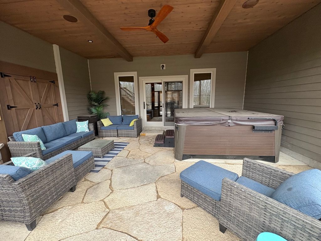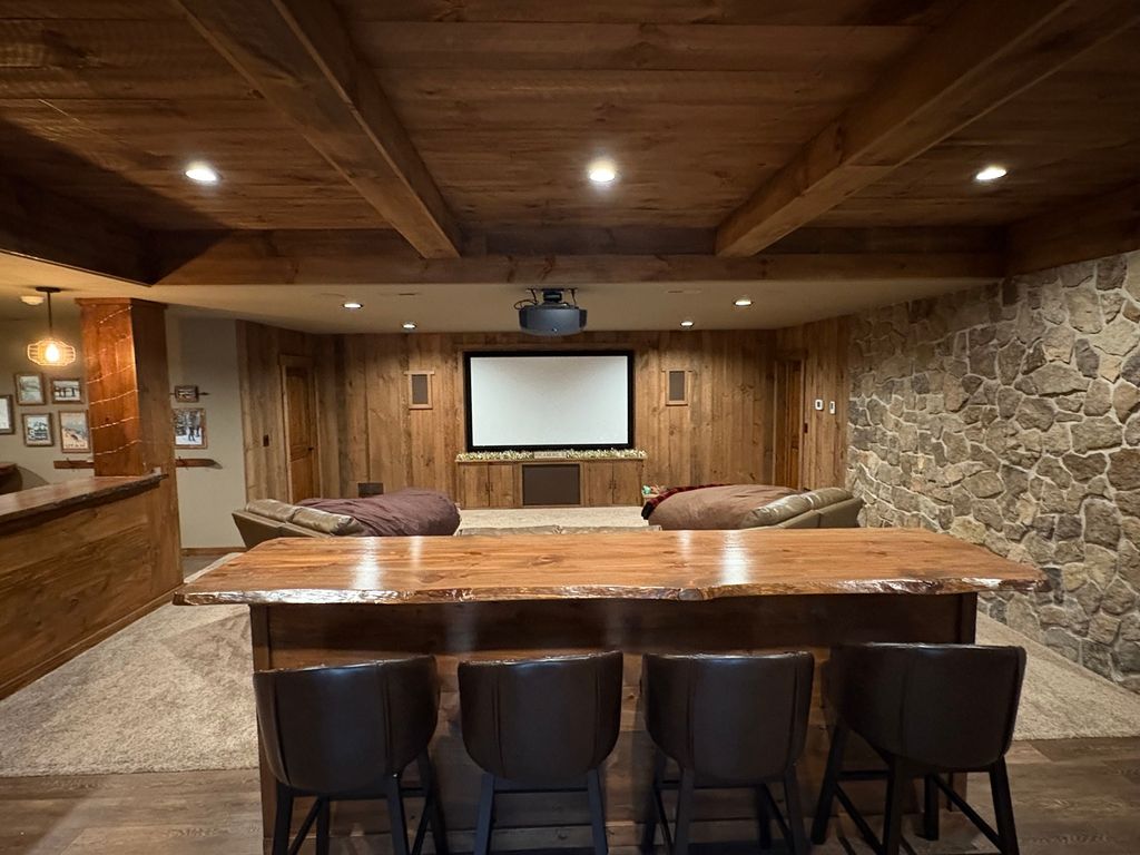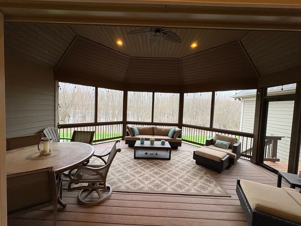 Welcome to this exceptional custom-built walkout ranch set on over an acre in the highly sought-after Arrowhead Acres neighborhood of Sycamore, IL. With over 5,500 square feet of beautifully finished living space, this home offers the perfect balance of luxury, comfort, and everyday functionality-set against a serene natural backdrop. The 3,100 square foot main level features 3 spacious bedrooms and 2.5 baths, along with an open, thoughtfully designed layout ideal for both entertaining and daily living. The gourmet kitchen is a true centerpiece, boasting a large island with a built-in microwave drawer, double oven, walk-in pantry, and custom cabinetry with soft-close drawers. A well-appointed laundry room with built-in lockers adds convenience and organization to the main floor. Just off the family room, a screened-in porch creates a seamless indoor-outdoor living experience-perfect for enjoying peaceful mornings or evening gatherings. The fully finished 2,400 square foot walkout basement is an entertainer's dream. It includes an additional bedroom and a custom bunk room with two built-in bunk beds, along with one full bath and a half bath. The expansive lower level is packed with amenities, including a game room featuring shuffleboard, a pool table, and an electronic dart board, a dedicated home gym, and an impressive theater room complete with a projector and screen for an immersive viewing experience. Step outside to the screened-in lower patio with a hot tub, offering a private space to relax year-round. The backyard is truly one-of-a-kind, backing to a branch of the Kishwaukee River-ensuring privacy with no future development behind you. Enjoy the beautifully designed outdoor space featuring a stone patio, outdoor stone fireplace, tranquil stream, and a basketball court-perfect for both entertaining and recreation. This remarkable property offers a rare opportunity to own a custom home with high-end features, expansive living space, and breathtaking natural surroundings in one of Sycamore's most desirable neighborhoods.