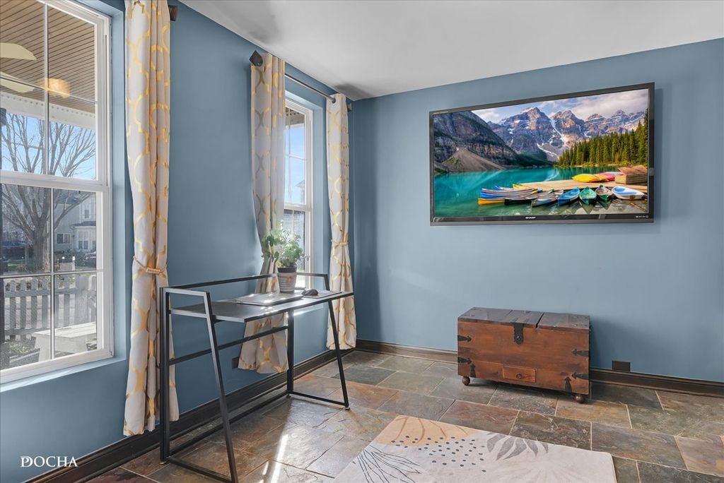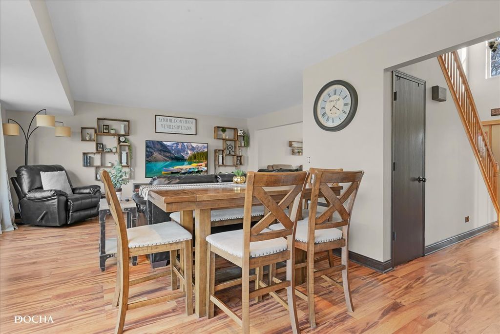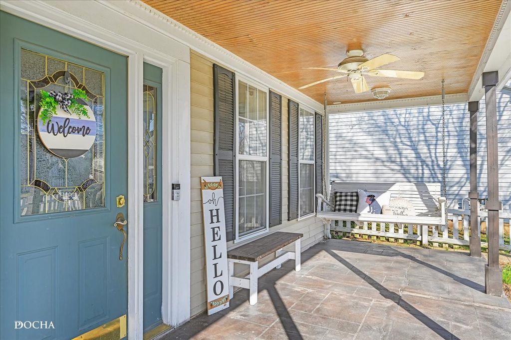 Welcome home to this charming property featuring a classic white picket fence that welcomes you to an oversized covered front porch complete with ceiling fans-perfect for enjoying a quiet morning coffee or unwinding in the evening at sunset. Step inside to a warm and inviting two-story foyer that opens into a spacious, open-concept floor plan with beautiful wood laminate flooring throughout the main level. To the left, you'll find a versatile room enhanced with custom French doors, currently used as a private den and office-ideal for today's flexible living needs. The living room flows seamlessly into the expansive family room, creating the perfect space for gathering and entertaining. The family room opens to the eat-in kitchen, which features abundant cabinet and counter space, a center island, and a pantry with a custom sliding barn door, new microwave (2025), dishwasher and fresh paint. A convenient half bath and a laundry/mudroom complete the main level, offering direct access to the attached two-car garage with ample storage space and asphalt driveway. Upstairs, you'll find five generously sized bedrooms, including a spacious primary suite with vaulted ceilings, a walk-in closet, and a private full bath featuring double sinks and a separate shower. The additional full hall bath down the hallway is also nicely sized with double sink and vanity with storage. Each bedroom offers carpeting and window blinds for added privacy. This home is packed with updates, including a brand-new furnace (February 2026), roof (2019) new trim throughout (2025) . Step outside to enjoy the backyard featuring a concrete patio, gazebo, fenced yard, and a dedicated dog run with gates-perfect for outdoor entertaining and pet lovers alike. Walking distance to Downtown stores, restaurants and community events! With nine total rooms and a thoughtfully designed layout, this well-maintained two-story home offers the perfect blend of space, comfort, and functionality-ready to welcome its next owner's home!