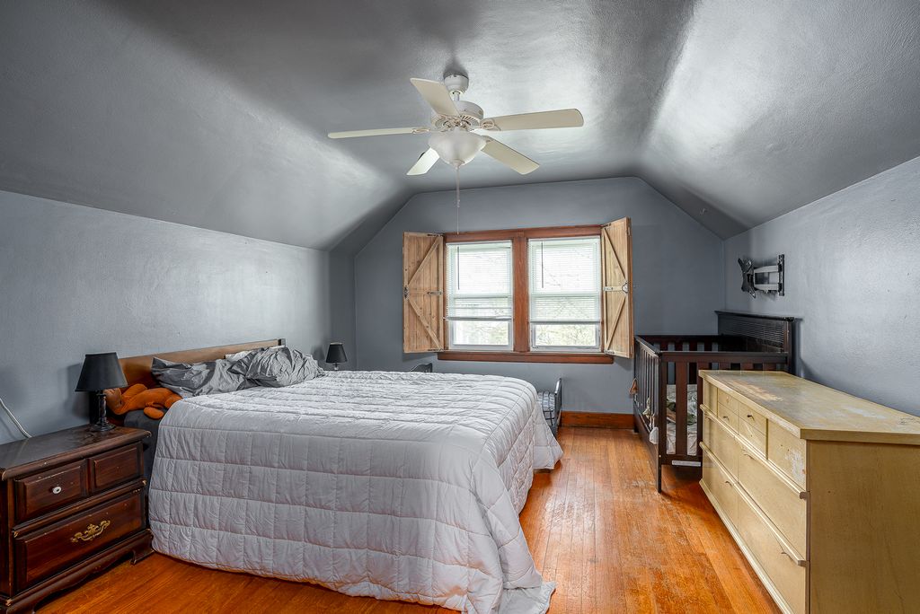 Character meets convenience in this well-maintained 3-bedroom, 1.5-bath home. Original hardwood floors bring classic charm throughout, and the first-floor main bedroom is a rare and practical find. Upstairs you'll find two additional bedrooms with easy access to the half bath. Outside, enjoy a cute fenced-in yard ideal for entertaining or unwinding, plus a detached two-car garage for all your storage needs. Recent updates include a new roof (2022) and new gutters, the big-ticket items are already taken care of. A truly move-in-ready opportunity you won't want to miss.