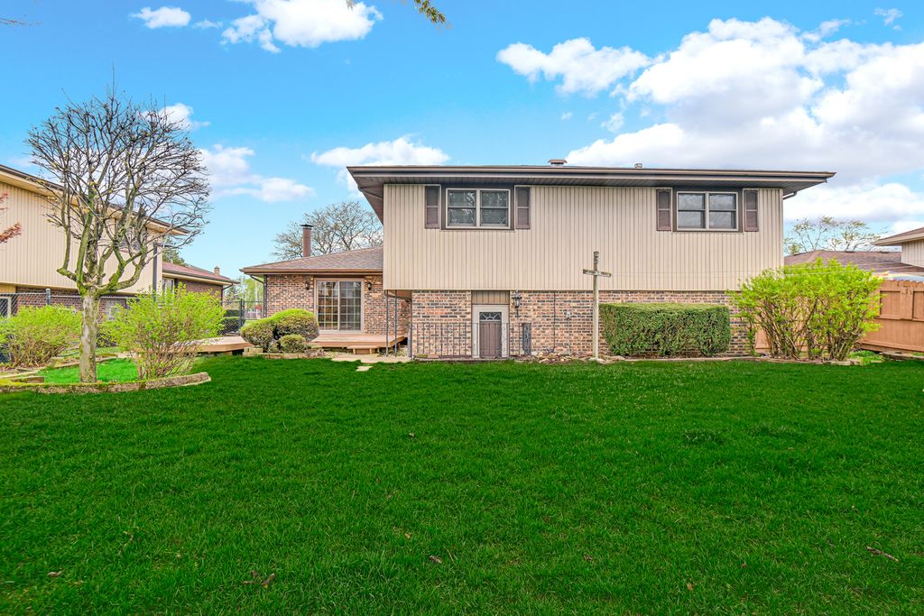 Welcome to this beautifully maintained, oversized tri-level home-offered for the very first time by its original owners. With 4 spacious bedrooms and 2 full bathrooms, this home offers exceptional space, comfort, and versatility rarely found in similar properties. The main level features a warm and inviting family room with a cozy gas fireplace and direct access to a private deck with brick paver patio-perfect for relaxing or entertaining. The large kitchen is equipped with stainless steel appliances, abundant cabinet space, recessed lighting, and a newer garbage disposal, making it both functional and stylish. A bright and expansive living room flows seamlessly into a formal dining area, ideal for gatherings. Upstairs, you'll find three generously sized bedrooms, all freshly repainted, along with a full bathroom that conveniently connects to the primary bedroom. The lower level offers even more living space, including a spacious recreation room with walk-out access, a fourth bedroom, a full bathroom, and a dedicated laundry area-perfect for guests or extended living arrangements. Step outside to enjoy a fully fenced backyard complete with a storage shed (with electric), large deck, and paver patio, offering plenty of room for outdoor entertaining. Additional highlights include a charming front porch, newer roof, some updated windows (including a beautiful bay window 2025), oven, microwave, dishwasher, disposal 2026, sump pump 2026, fireplace and exhaust updated 2026, and a two-car attached garage with a newer opener 2026. Located in the highly sought-after Andrew High School District and just minutes from shopping, dining, parks, and scenic walking trails at Centennial Park, this home truly combines comfort, space, and convenience. Lovingly cared for and in excellent condition, this home is being offered as-is-a rare opportunity you won't want to miss. See listing photos for full floor plan layout.
