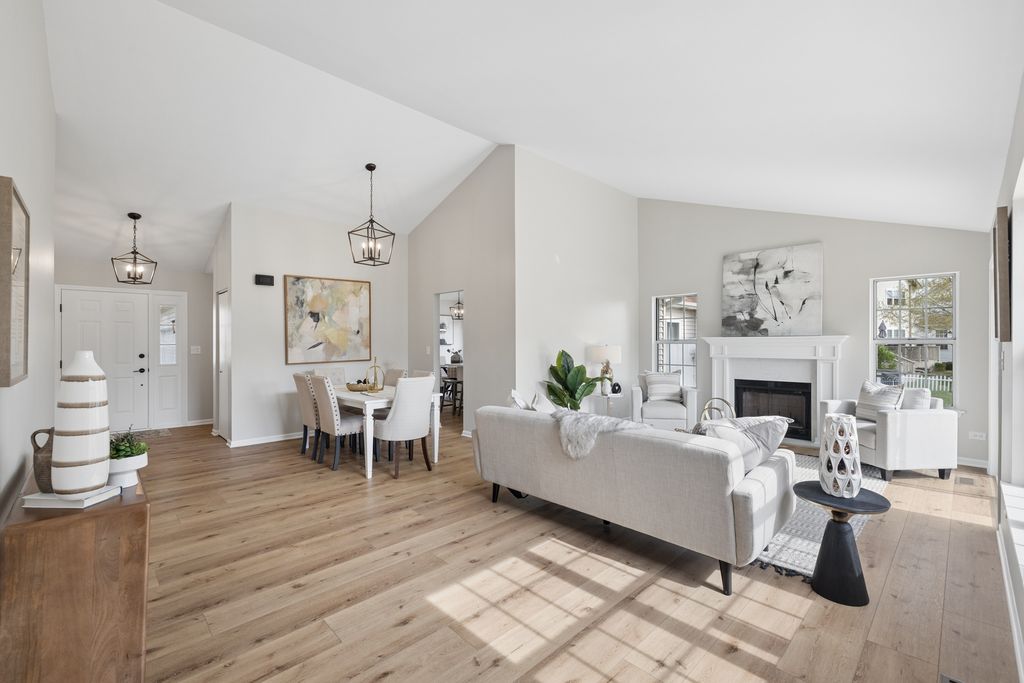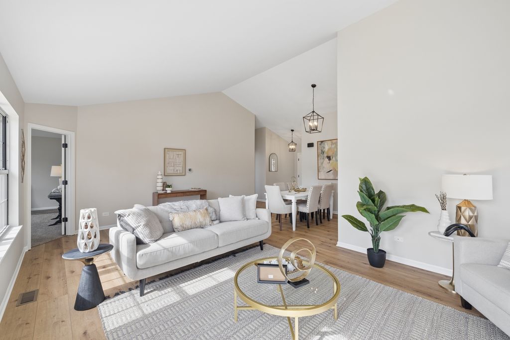 Welcome to easy, low-maintenance living in the highly sought-after Carillon 55+ adult community. This beautifully updated 2-bedroom, 2-bath home offers a bright, open layout designed for both comfort and convenience, with modern finishes throughout. Step inside to discover all new interior paint, new stylish light fixtures, and brand-new luxury vinyl plank flooring across the main living areas complimented by plush new carpet in both bedrooms. The completely renovated kitchen is a standout, featuring new stylish shaker-style cabinetry, center island, new quartz countertops, new designer backsplash, and all-new stainless steel appliances-perfect for everyday living. The spacious family room impresses with a vaulted ceiling and cozy fireplace, creating a warm and inviting atmosphere. The vaulted primary suite serves as a private retreat with a walk-in closet and a beautifully redone en-suite bath, complete with a new double vanity, updated fixtures, and a new fully tiled shower and tub with a sleek glass shower door. The hall bath has also been thoughtfully updated with a new vanity, new shower tile, and modern plumbing fixtures. Major mechanical updates provide peace of mind, including a new roof and a 2025 furnace and air conditioning system. Additional highlights include a new washer and dryer and new wood decking just outside your patio doors-perfect for relaxing. Residents of Carillon enjoy resort-style amenities including a 32,000 sq ft clubhouse, fitness center, swimming pools, and walking paths and more. Also close to shopping, restaurants, and I-55. Make your appointment today! Agent is related to seller.